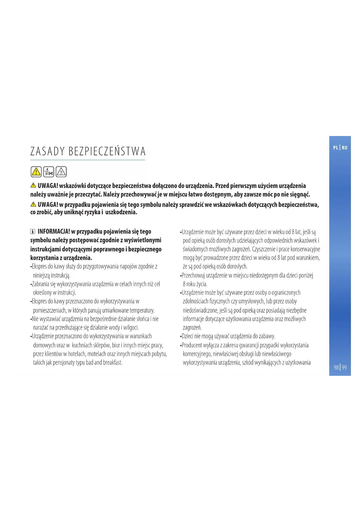 Przed włączeniem ekspresu należy zapoznać się z zaleceniami i środkami ostrożności opisanymi w niniejszej instrukcji.