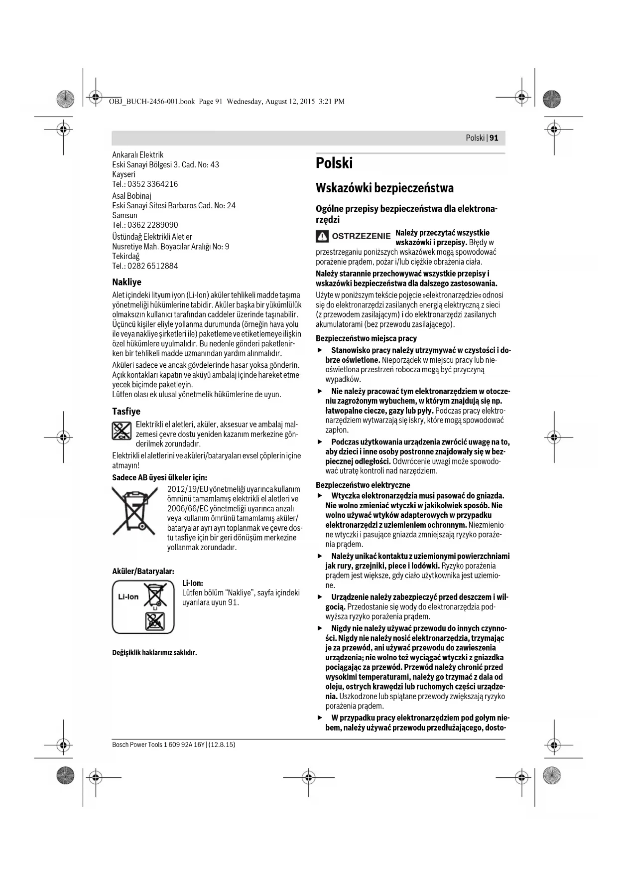 uyarılara uyun 91. Değişiklik haklarımız saklıdır. Polski