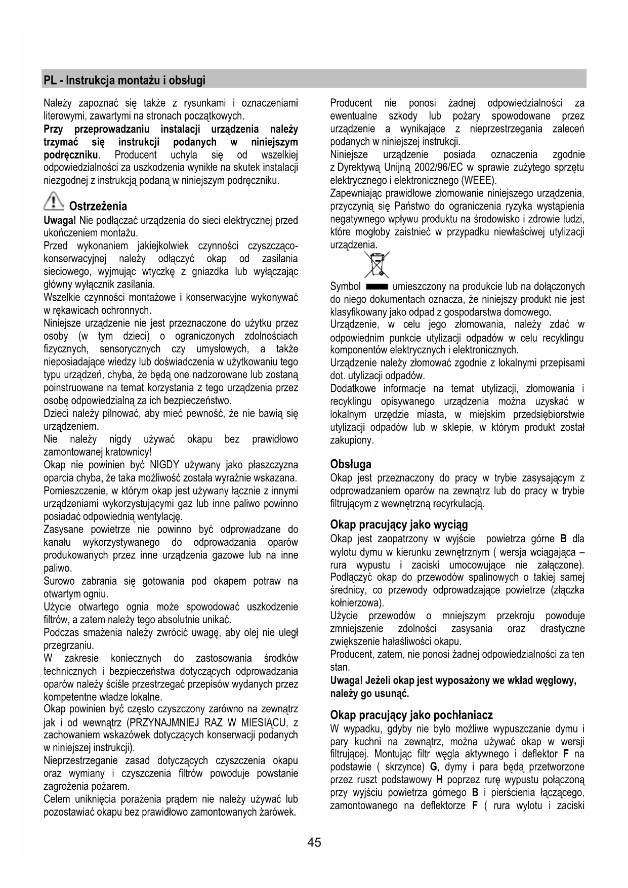 odprowadzaniem oparów na zewnątrz lub do pracy w trybie