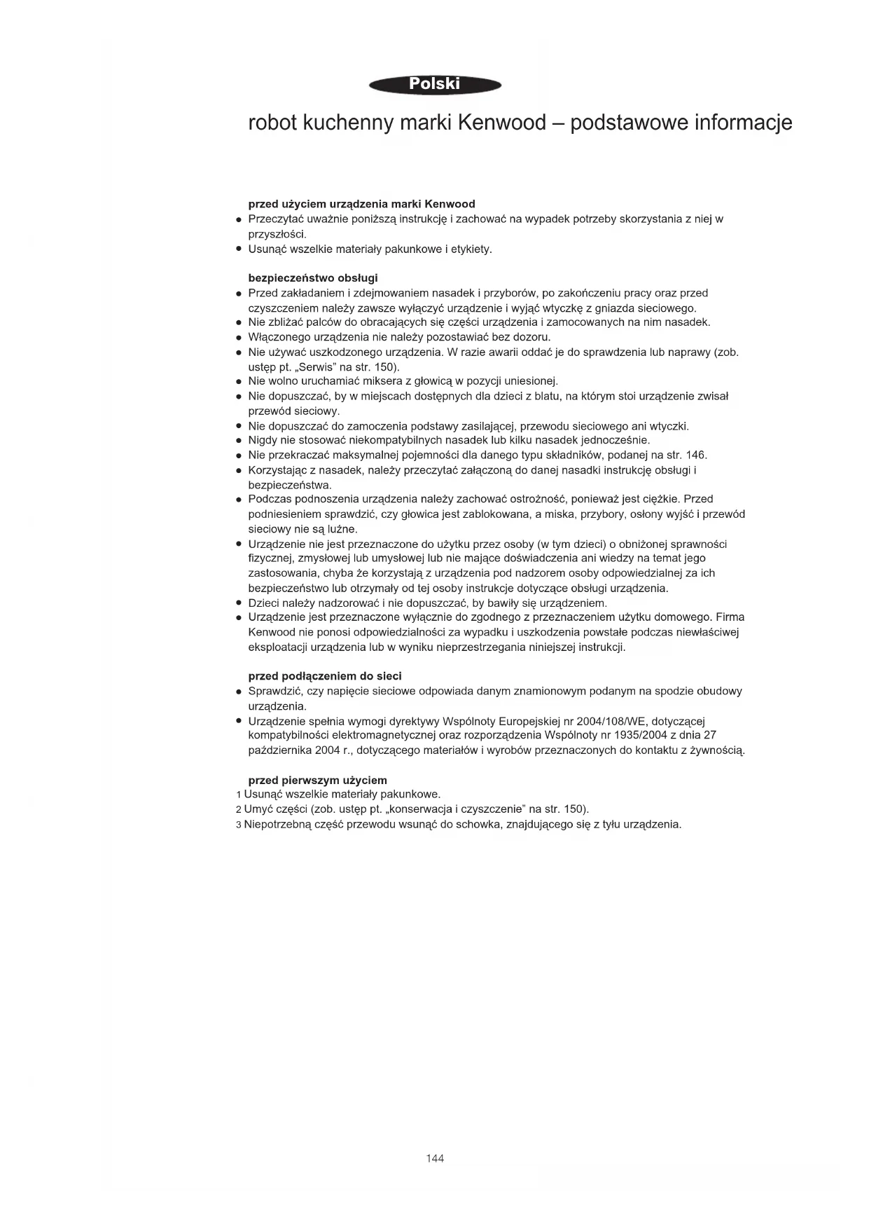 142143przed użyciem urządzenia marki Kenwood