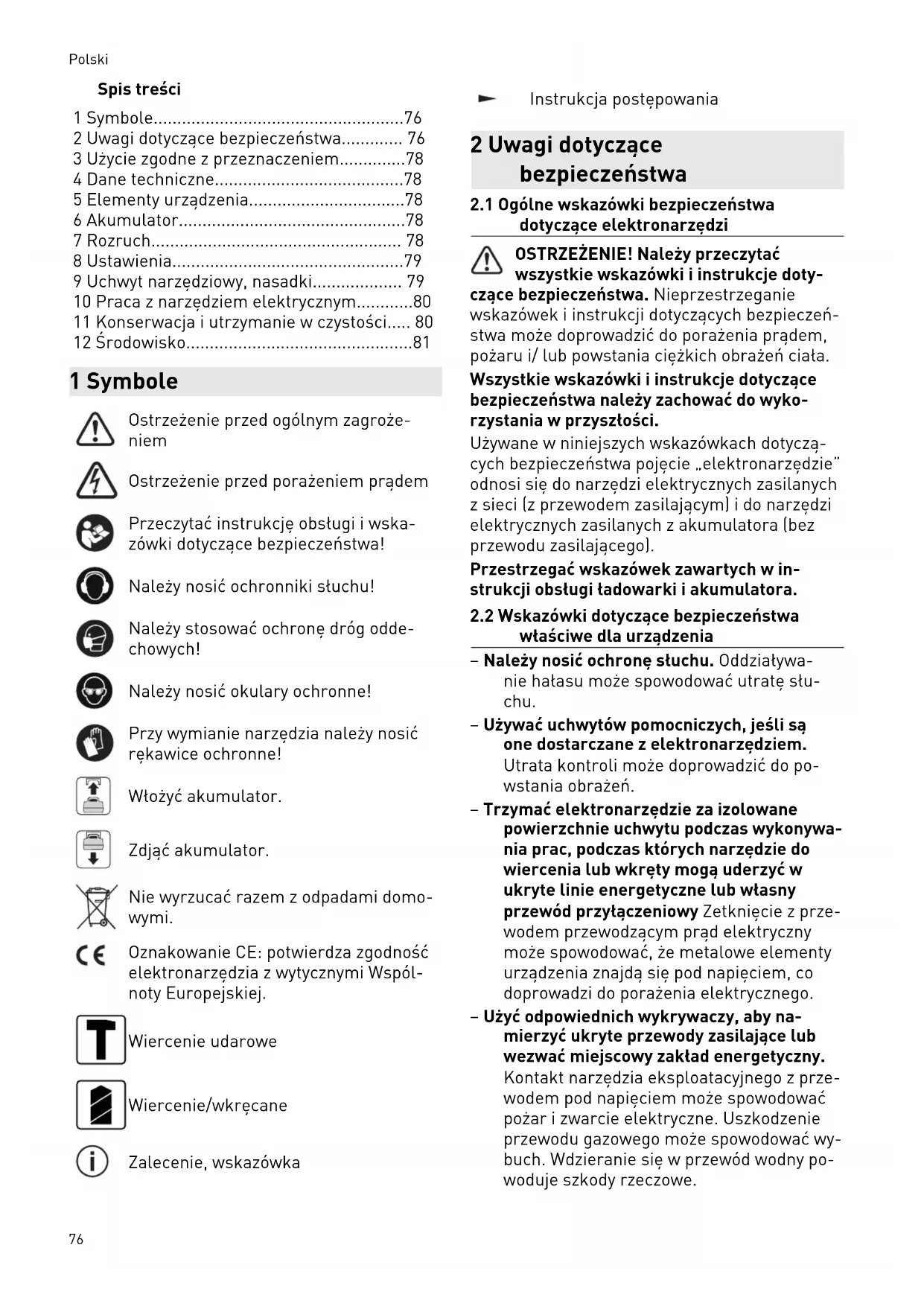 2 Uwagi dotyczące bezpieczeństwa 76