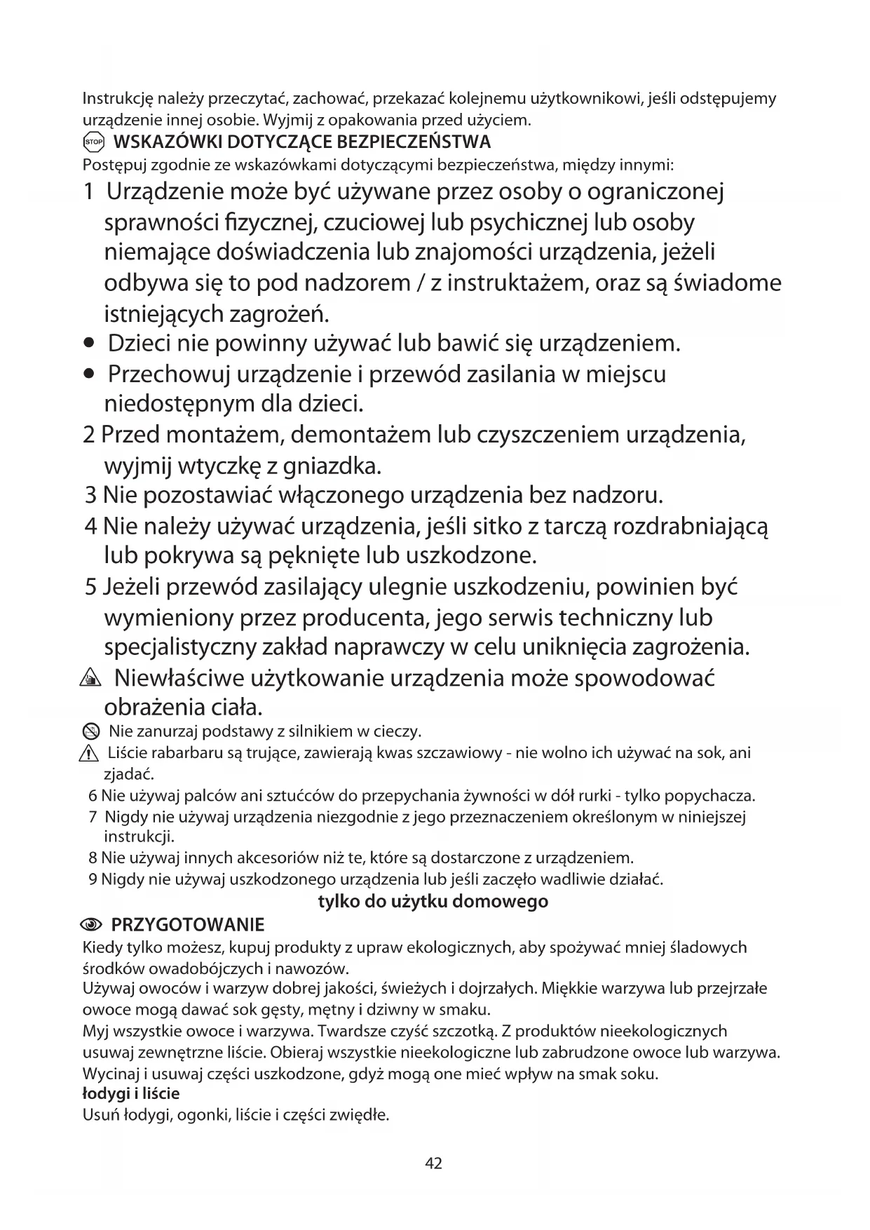 7 Nigdy nie używaj urządzenia niezgodnie z jego przeznaczeniem określonym w niniejszej