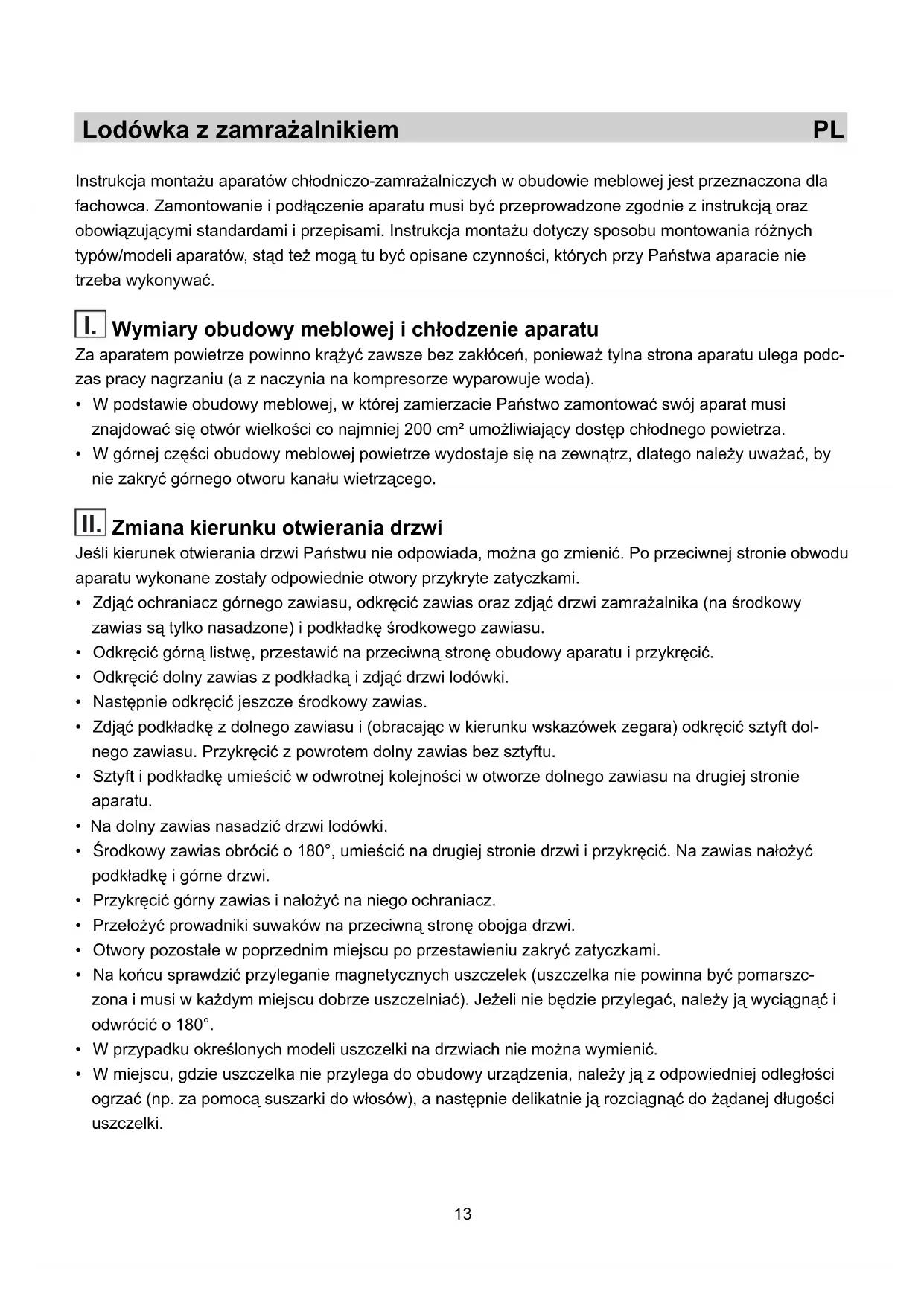 Instrukcja montażu aparatów chłodniczo-zamrażalniczych w obudowie meblowej jest przeznaczona dla