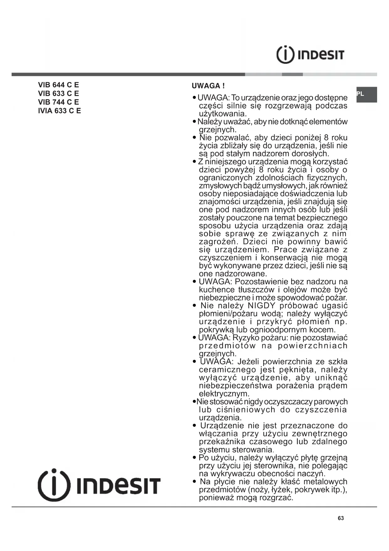 INSTRUKCJA OBSŁUGI VIB 744 C E INDESIT