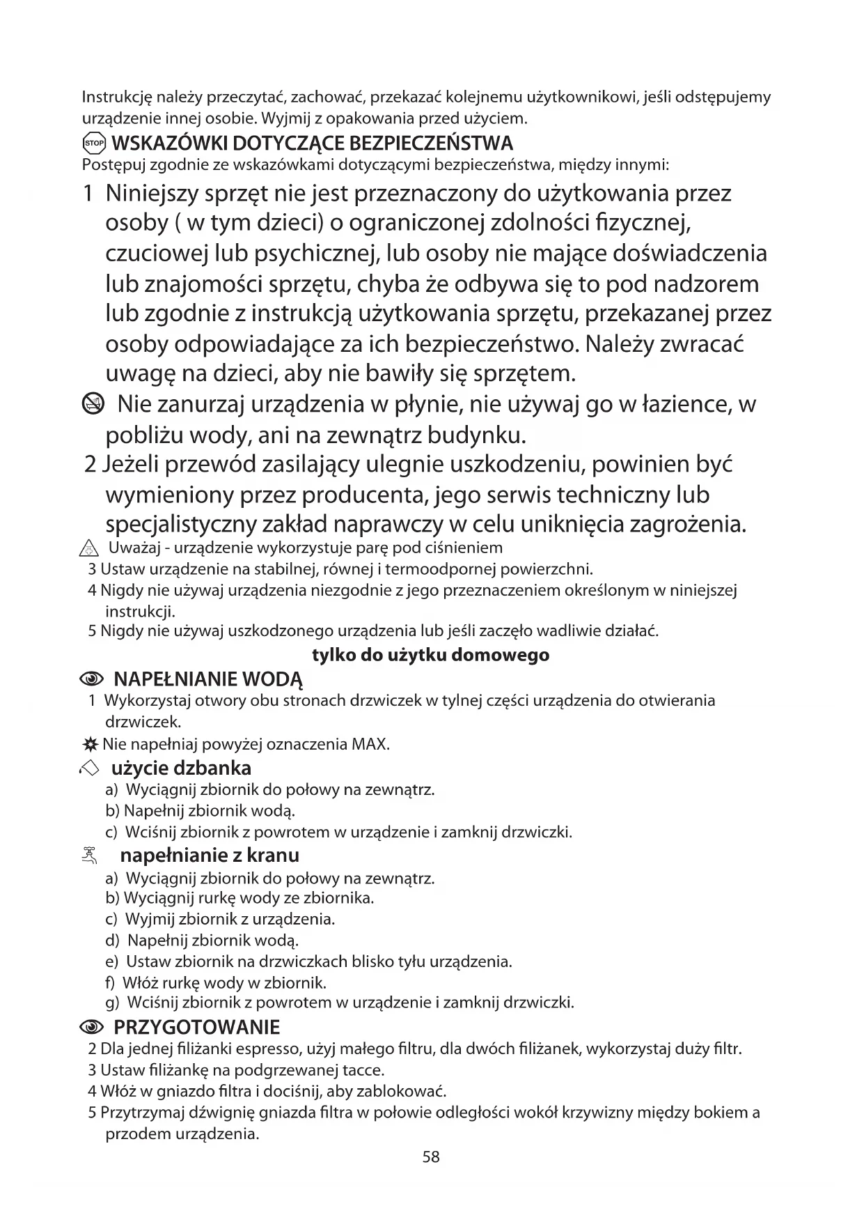 o Uważaj - urządzenie wykorzystuje parę pod ciśnieniem
