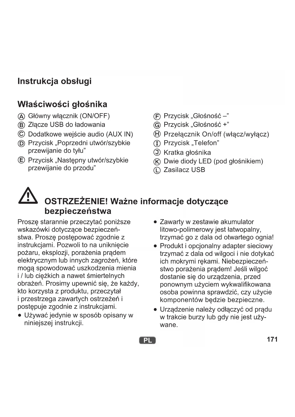 Używać jedynie w sposób opisany w niniejszej instrukcji.