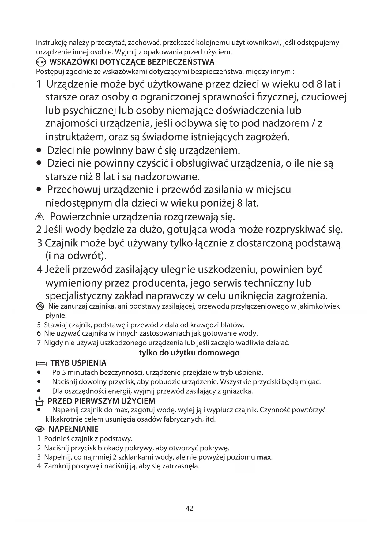 19 Wyjmij wtyczkę z gniazdka, przed czyszczeniem czajnik musi ostygnąć.