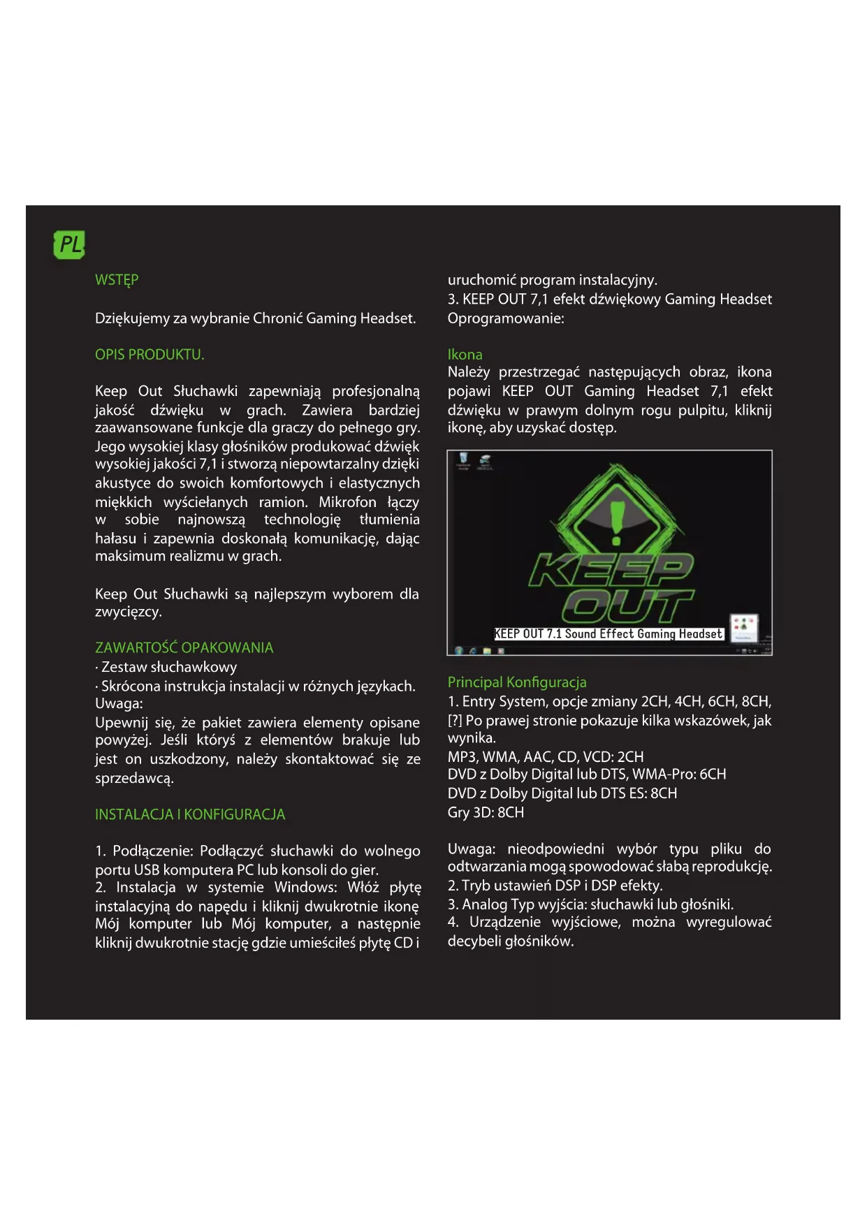 Naležy przyestrzegać nastepujacych obr, ikona pojawi KEEP OUT Gaming Headset 7,1 efekt dzwieku w sprawym dolnym rogu pulpitu, kliknjikone, aby uzyskać dostep.
