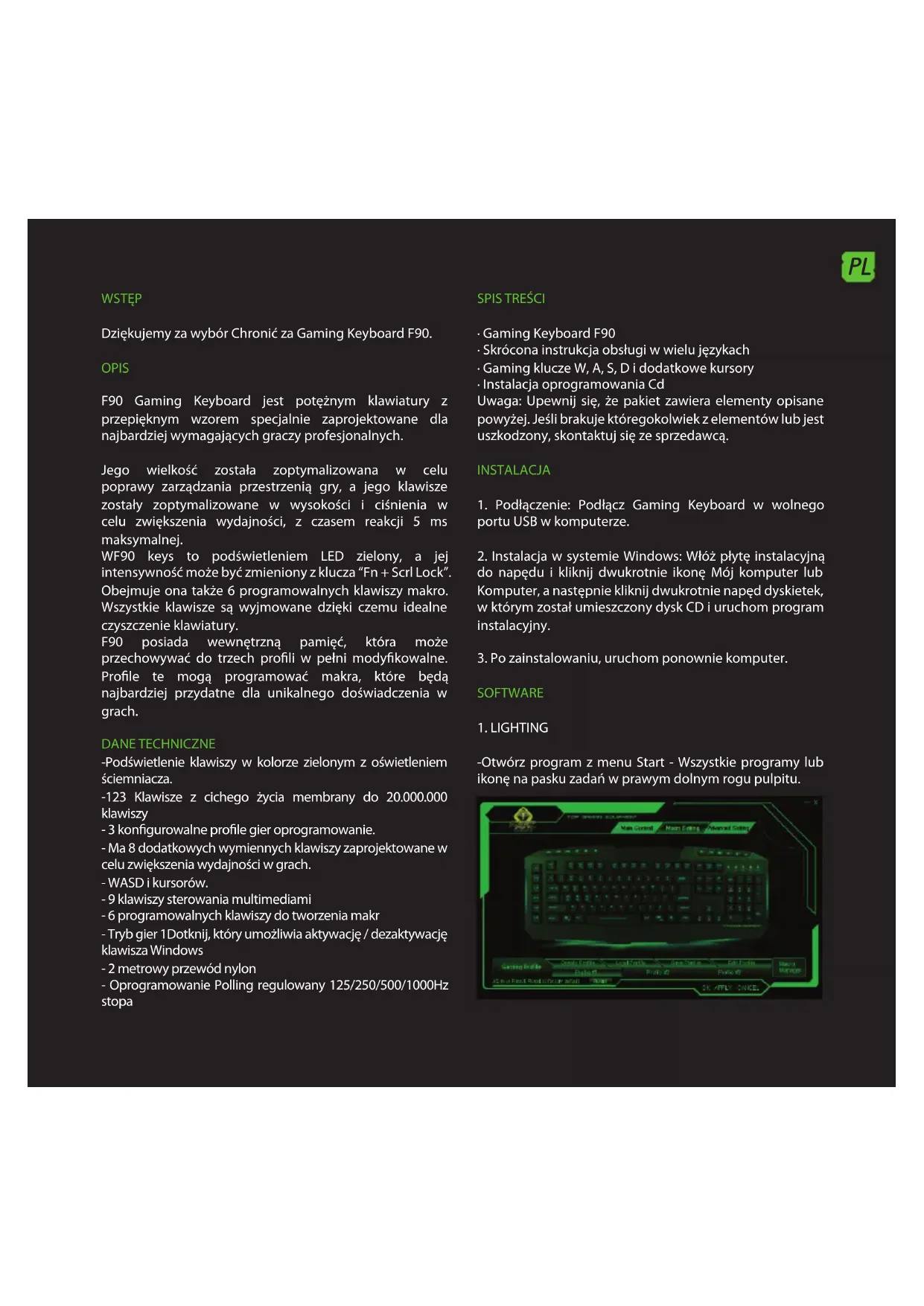 Dziekujemy za wybor Chronica z Gaming Keyboard F90.