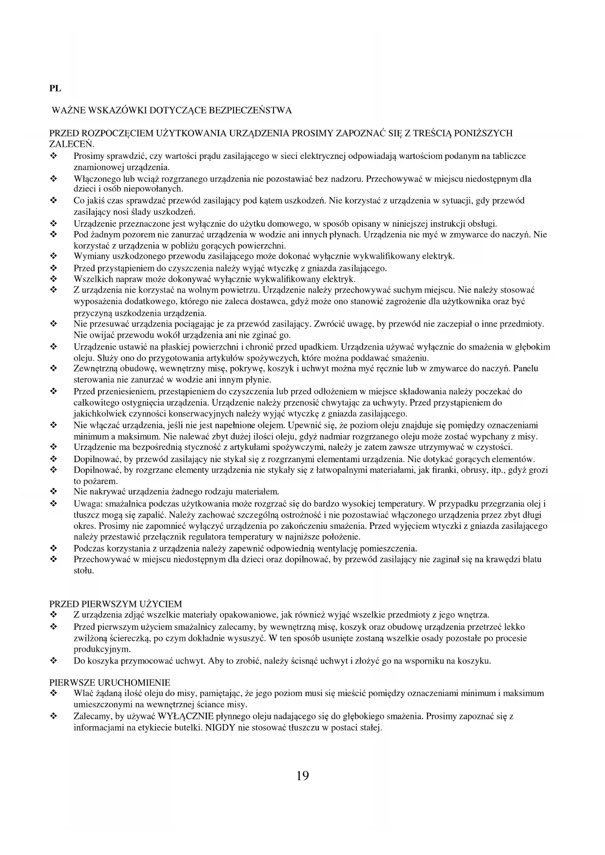 Zalecamy, by używać WYŁĄCZNIE płynnego oleju nadającego się do głębokiego smażenia. Prosimy zapoznać się z