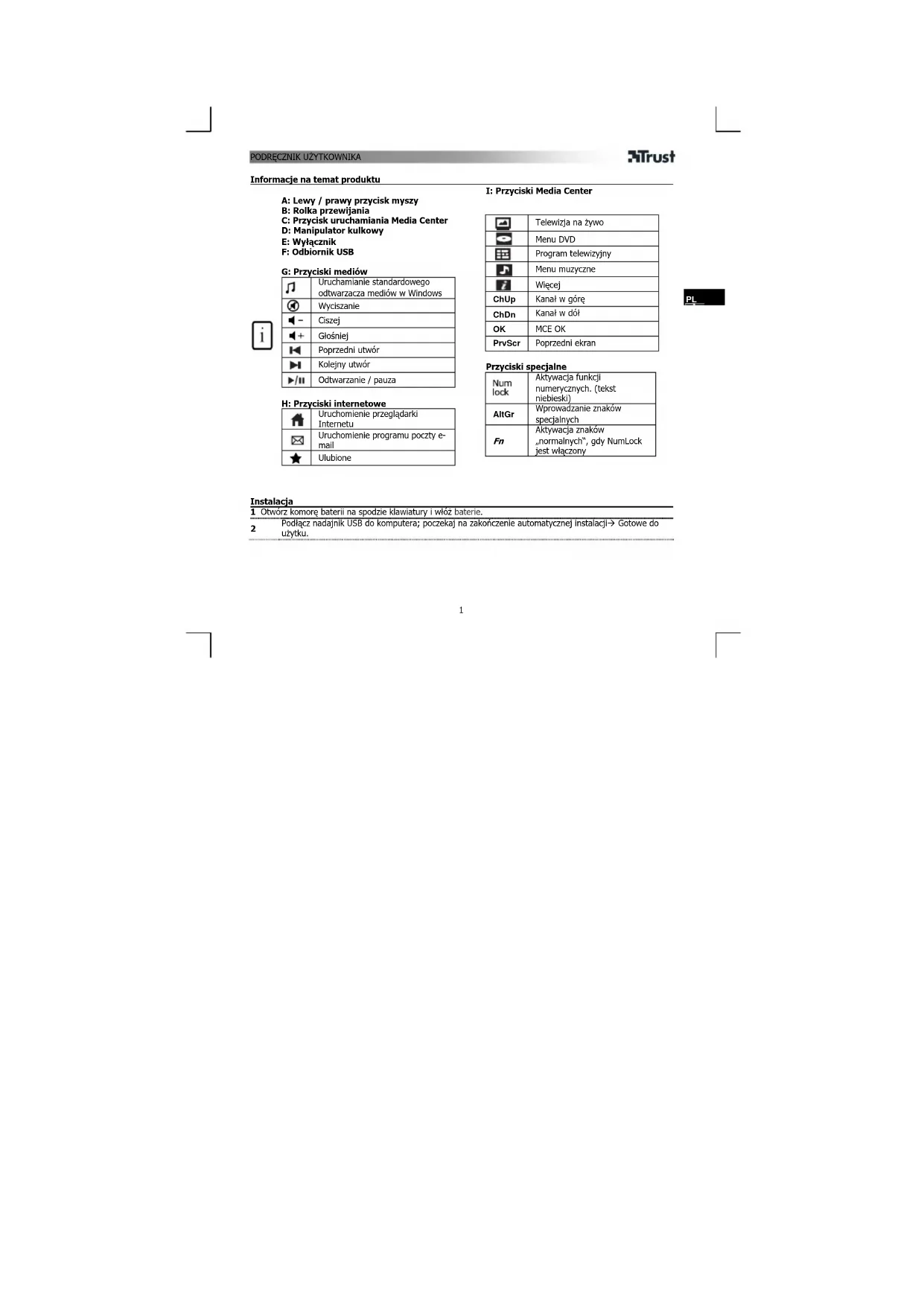 Znajdź bezpłatnie instrukcję urządzenia KB2950 TRUST w formacie PDF.