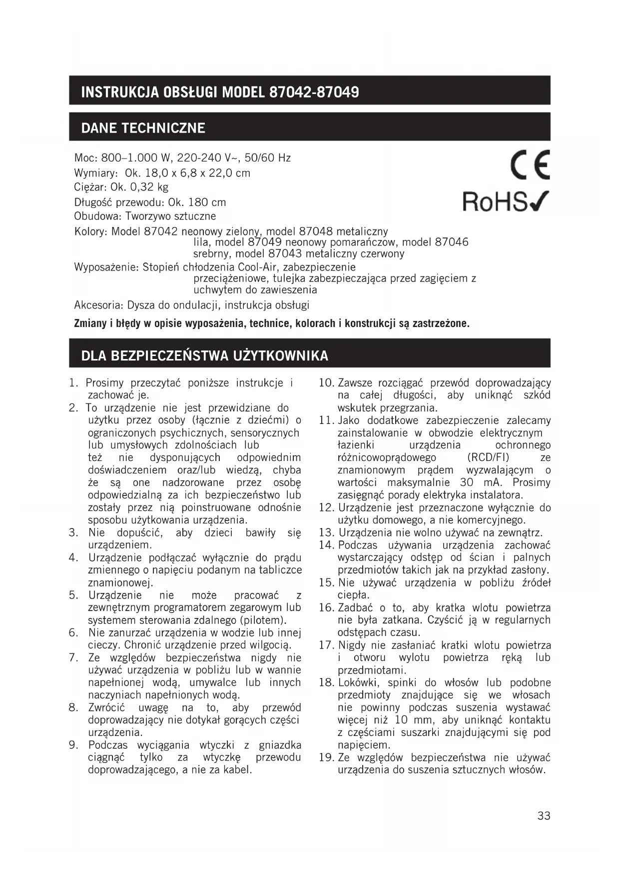 Instrukcja obsługi Model 87042-87049