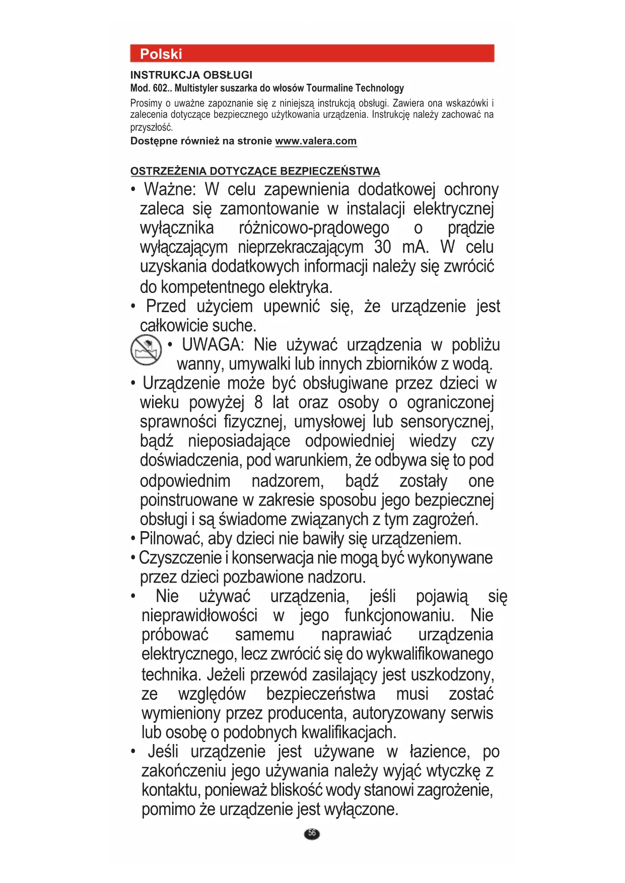Znajdź bezpłatnie instrukcję urządzenia Pro Style 400 Tourmaline 602.01B VALERA w formacie PDF.
