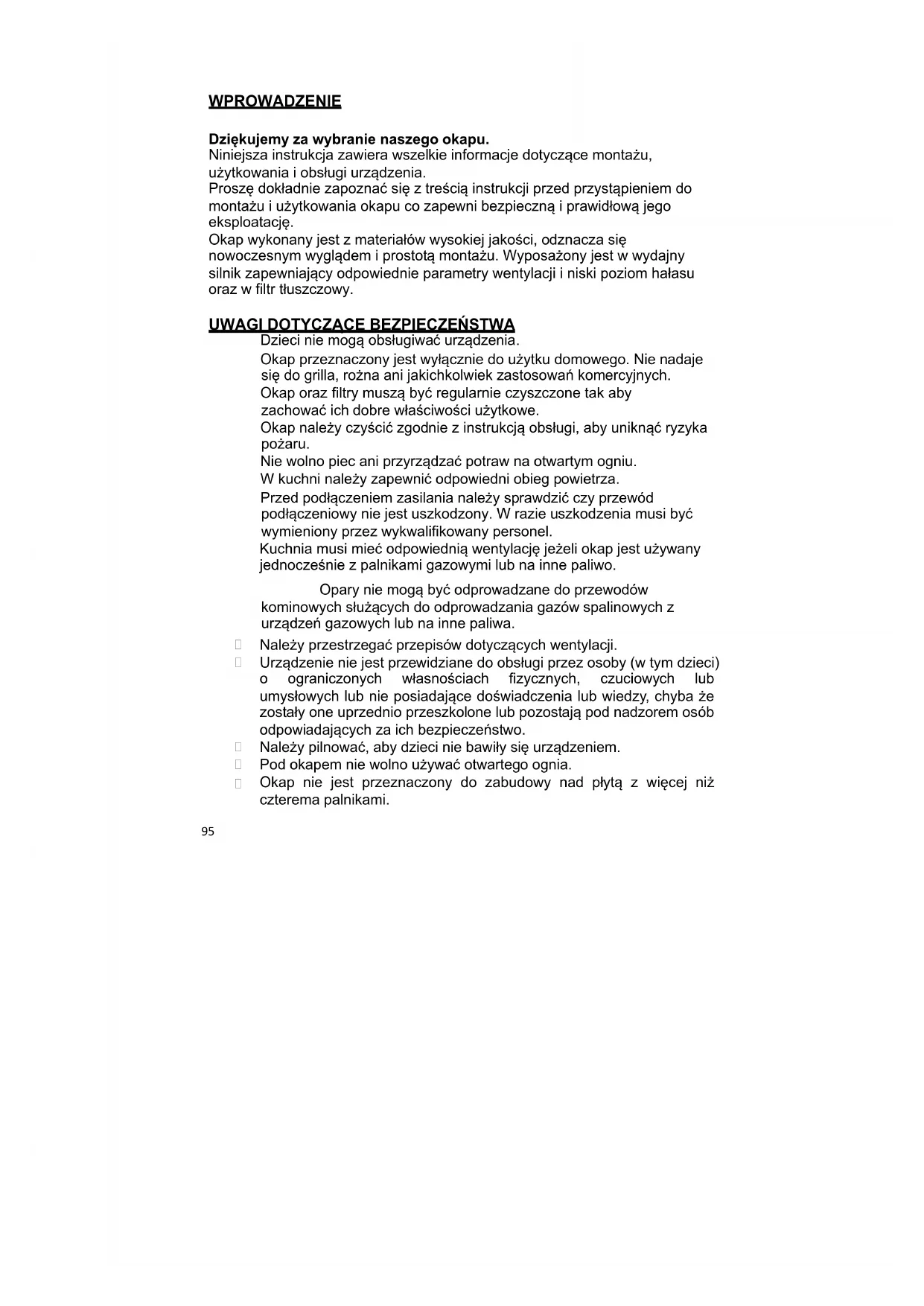 montażu i użytkowania okapu co zapewni bezpieczną i prawidłową jego