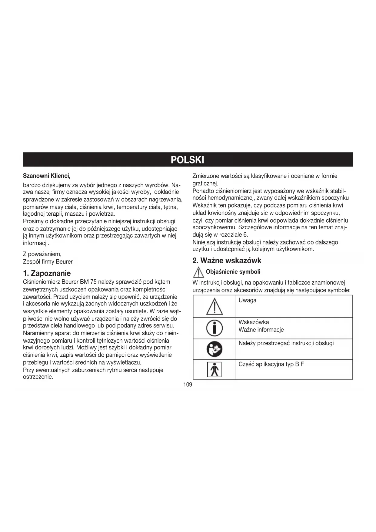 INSTRUKCJA OBSŁUGI BM 75 BEURER