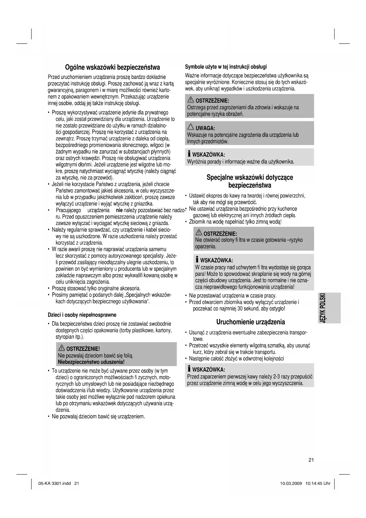 JĘZYK POLSKI JĘZYK POLSKI Ogólne wskazówki bezpieczeństwa