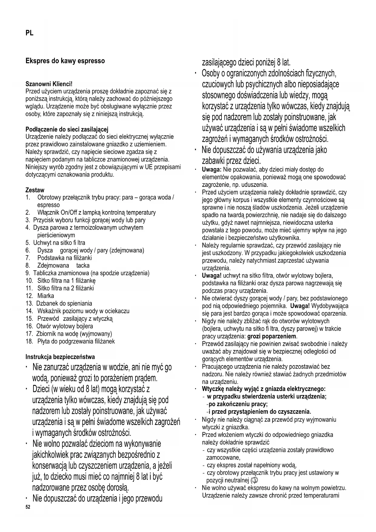 ∙ Nie wolno używać ekspresu do kawy na wolnym powietrzu.
