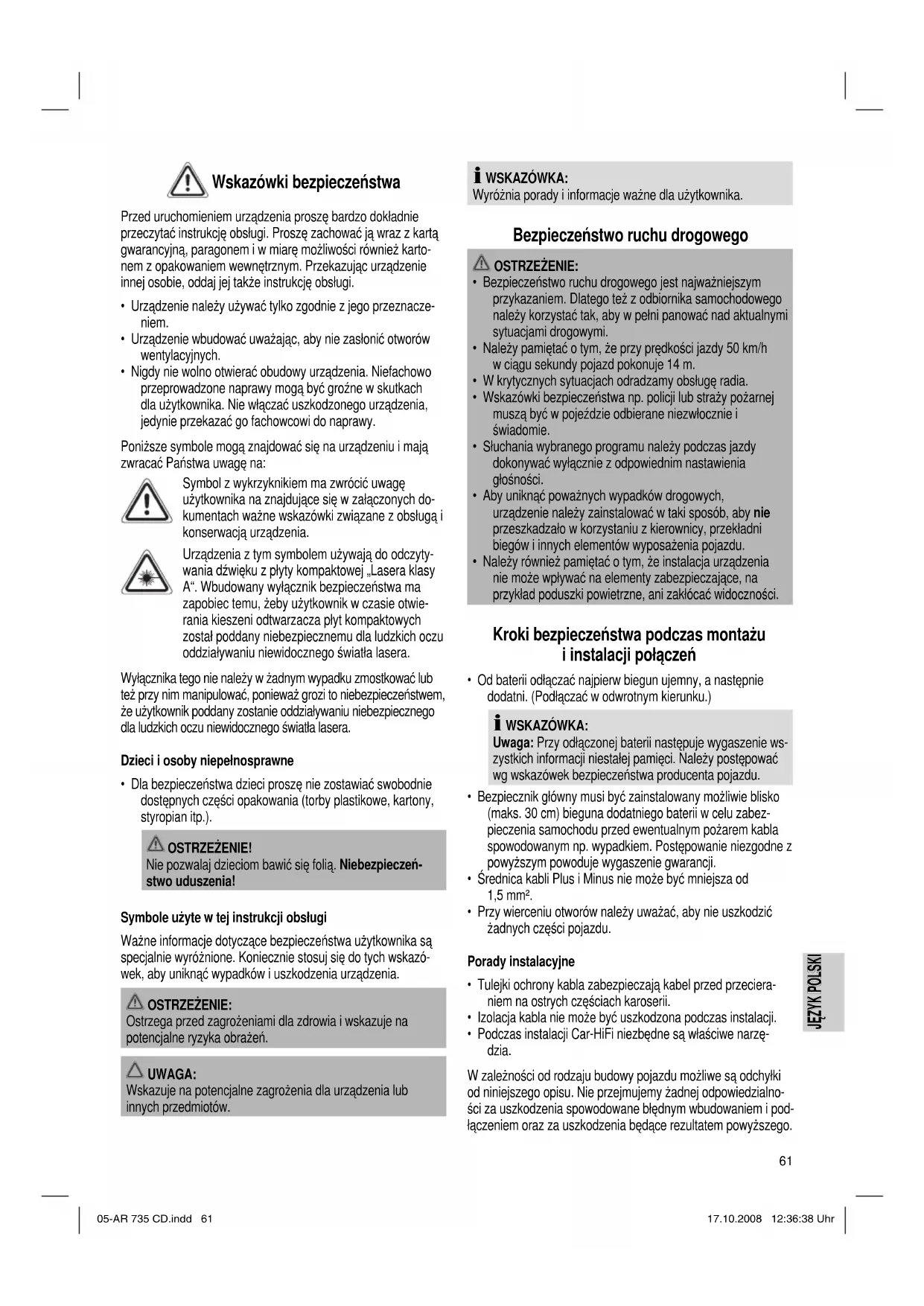 Wskazówki bezpieczeństwa 61