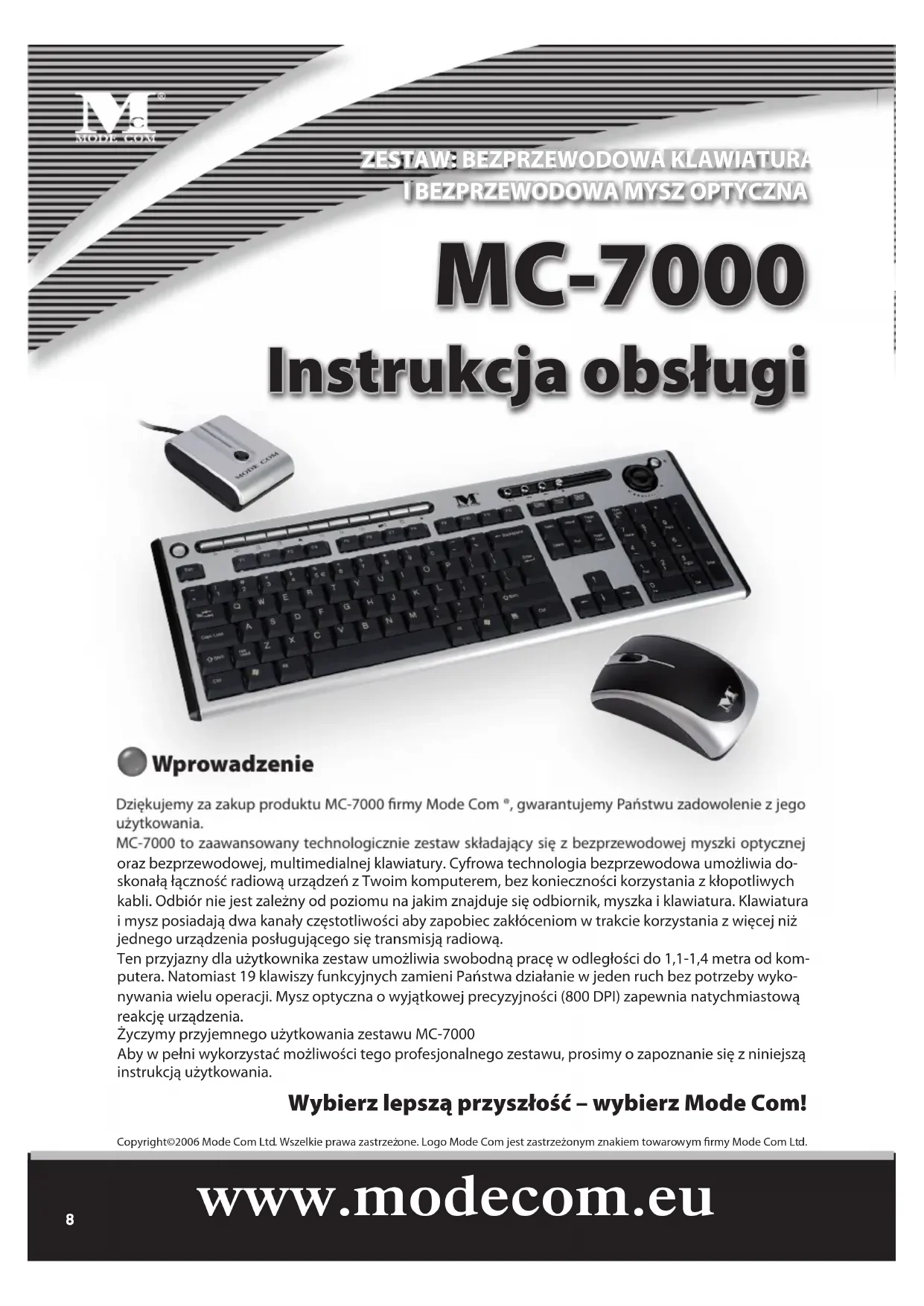 Dziekujemy za zakup produktu MC-7000 firmy Mode Com®, gwarantujemy Pańwu zadowolenie z seinen uzytkowania.