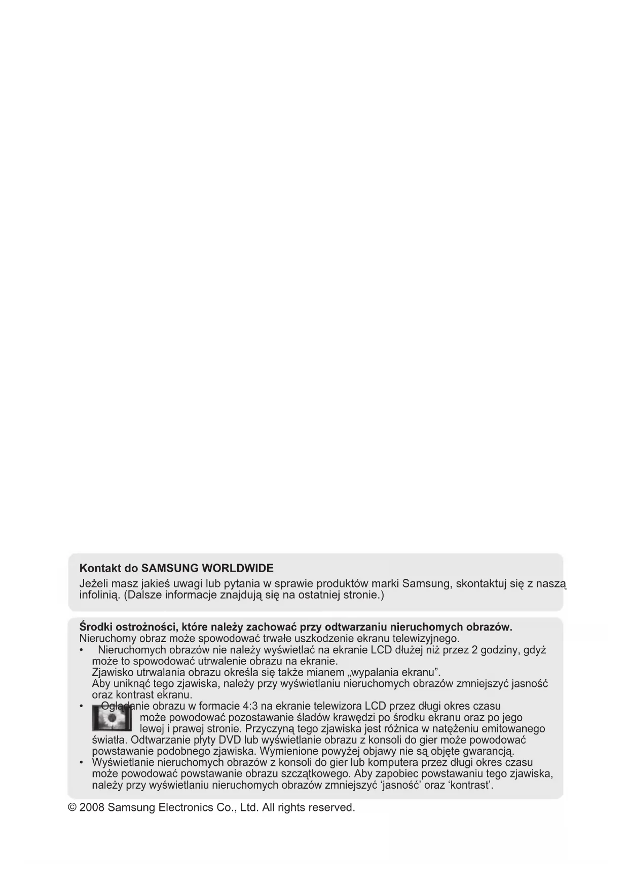 • Oglądanie obrazu w formacie 4:3 na ekranie telewizora LCD przez długi okres czasu