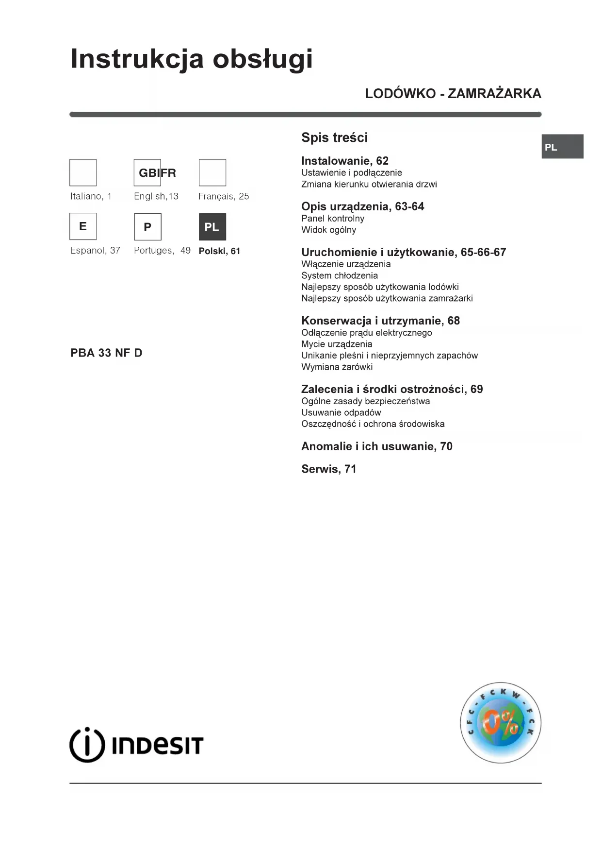 INSTRUKCJA OBSŁUGI Combinado PBAA 33 NF D INDESIT