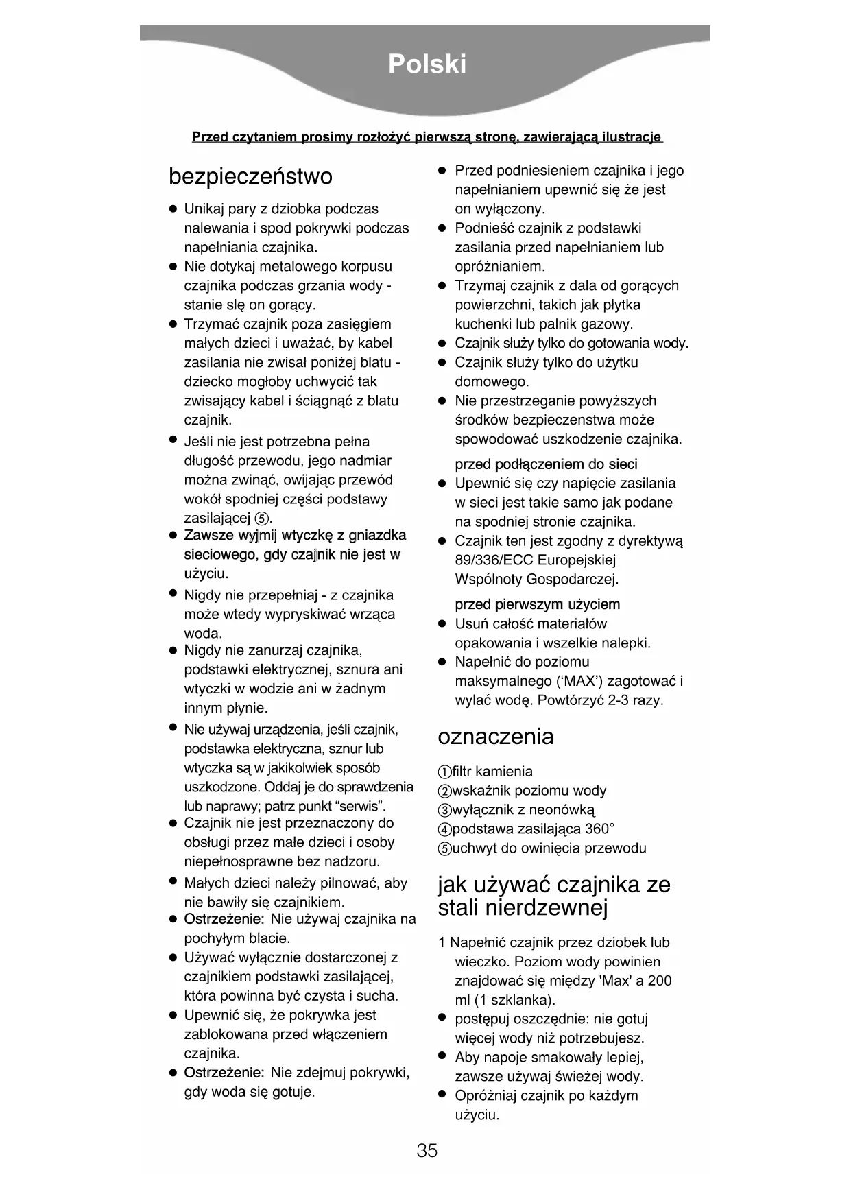 Przed czytaniem prosimy roz¢o¯yç pierwszå stronë, zawierajåcå ilustracje2 Sprawdzić zamknięcie pokrywki