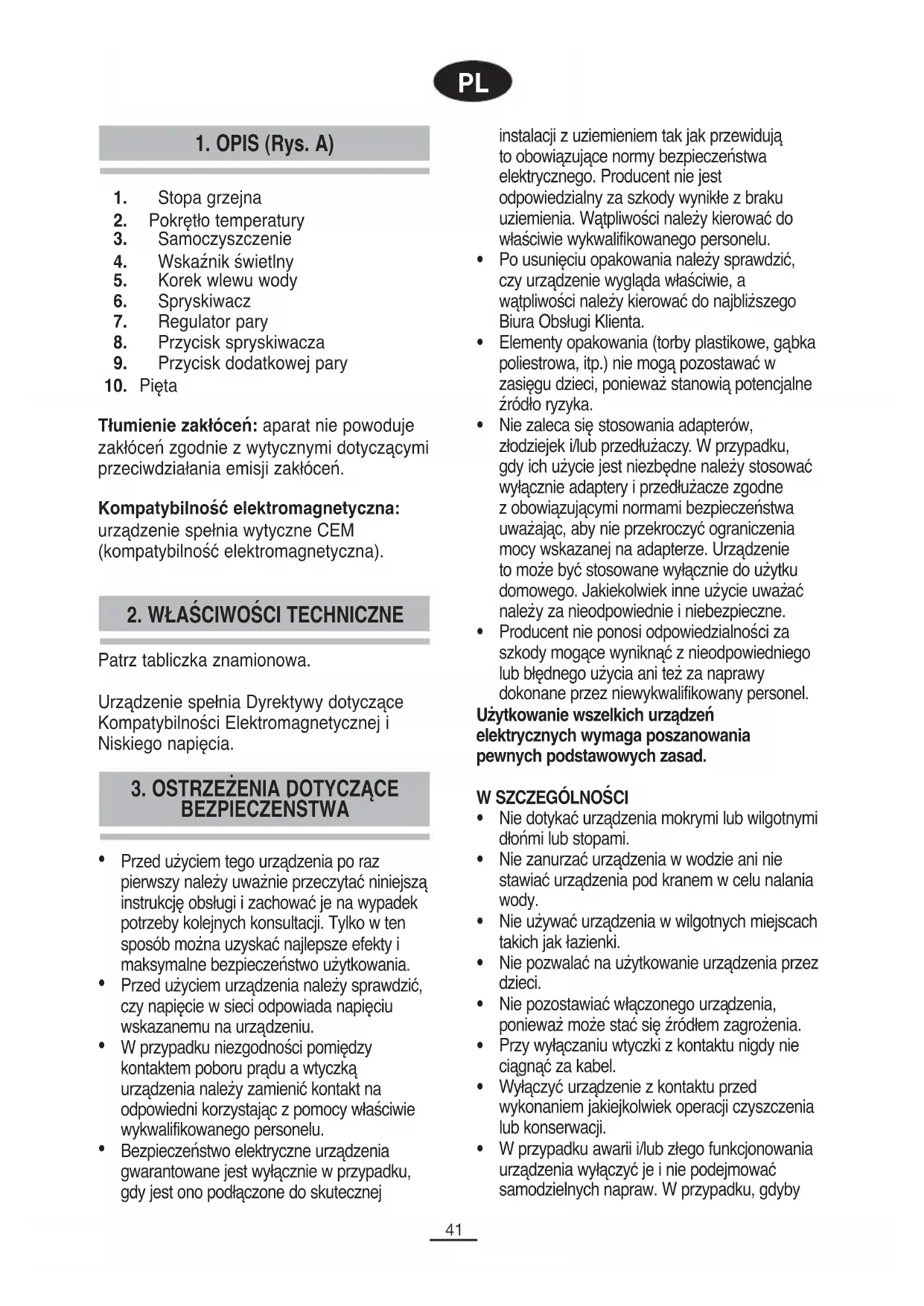 2. WŁAŚCIWOŚCI TECHNICZNE PL Patrz tabliczka znamionowa.