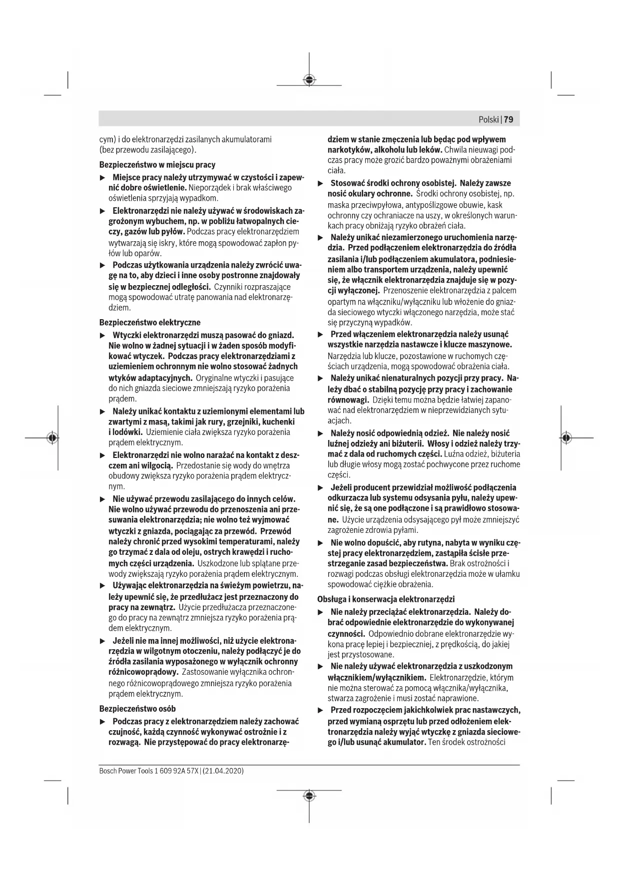 silanych energią elektryczną z sieci (z przewodem zasilają- 1 609 92A 57X | (21.04.2020) Bosch Power ToolsPolski | 79
