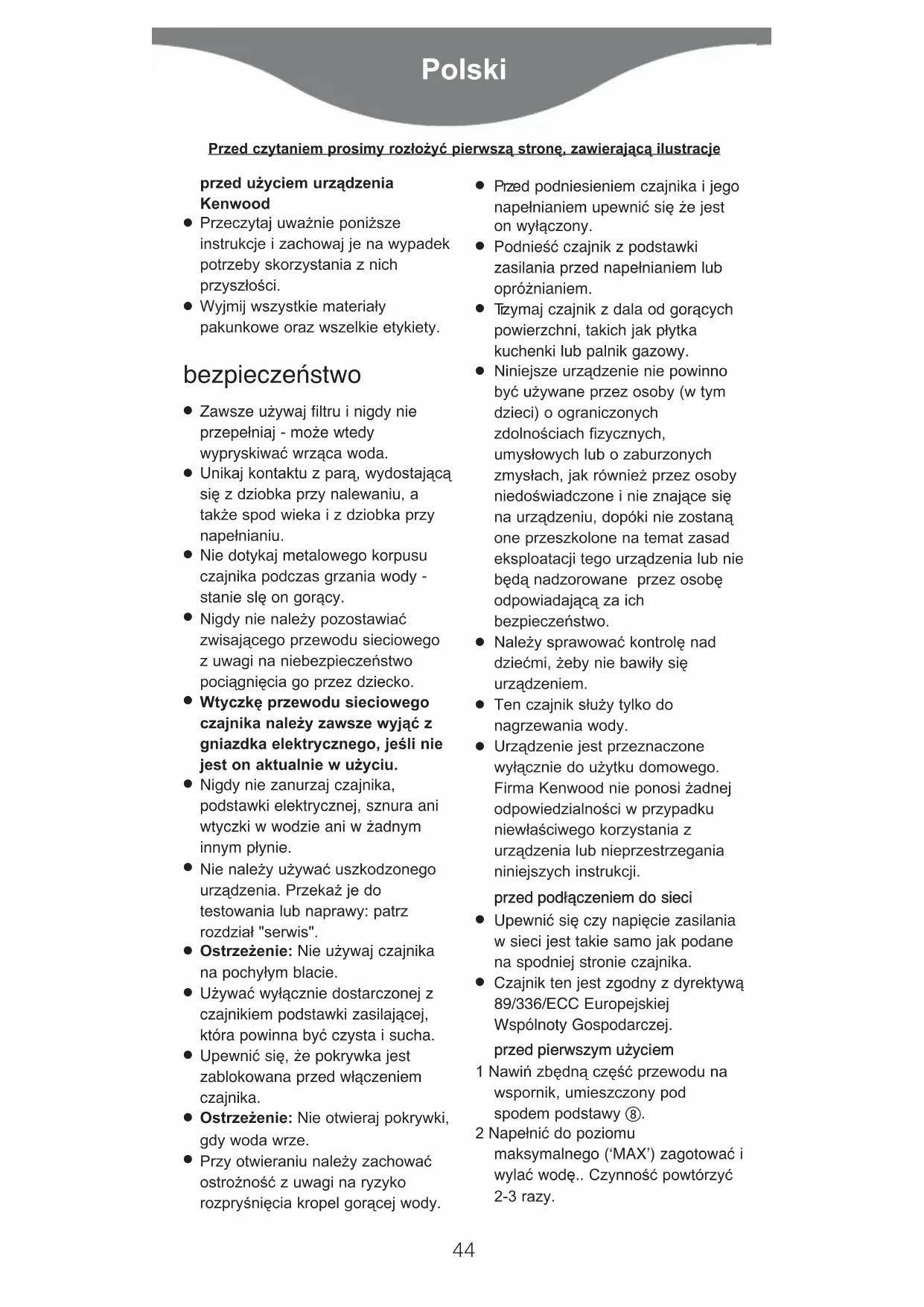 SJM250 - Czajnik KENWOOD - Bezpłatna instrukcja obsługi