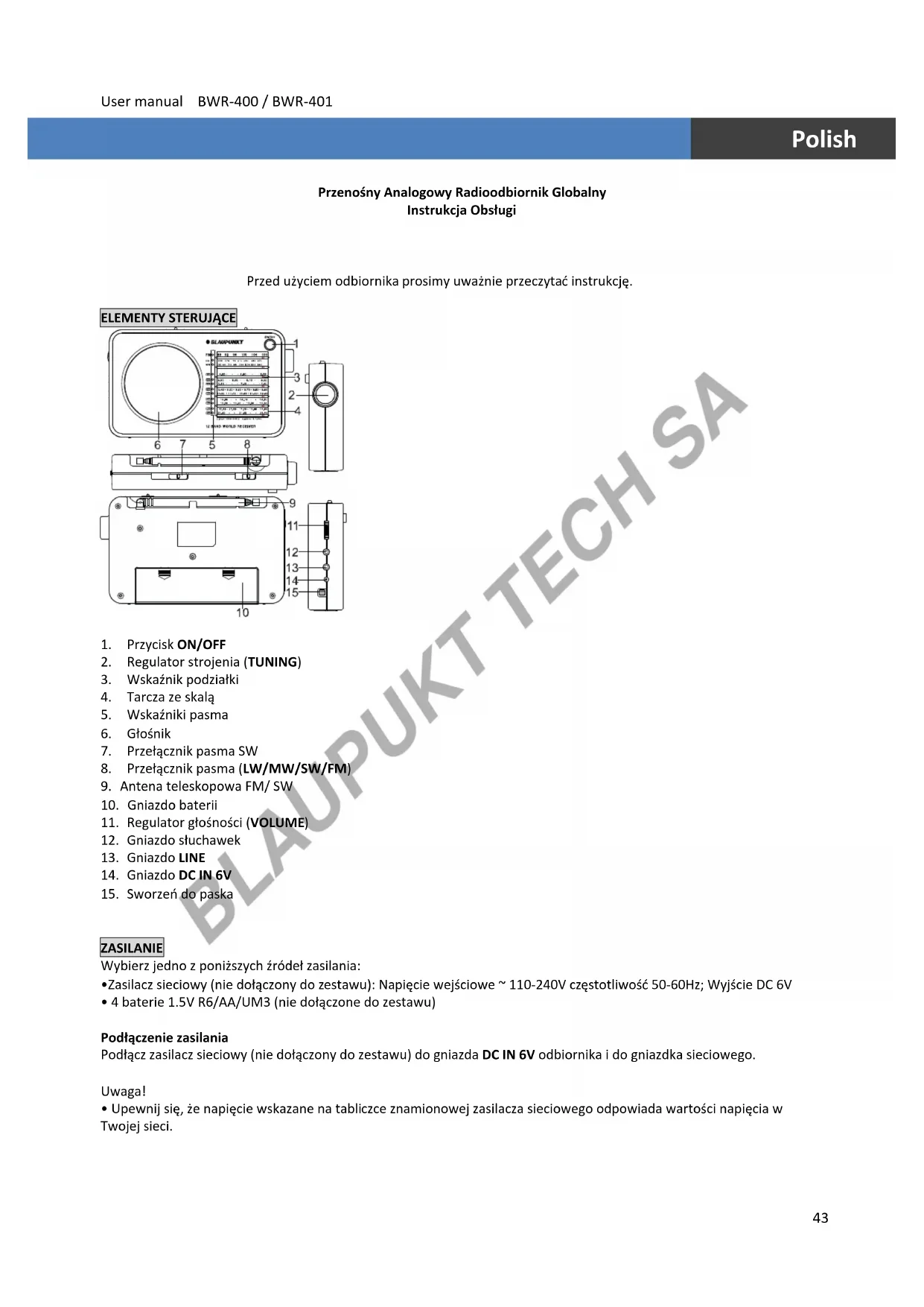 BWR400 - Radio BLAUPUNKT - Bezpłatna instrukcja obsługi