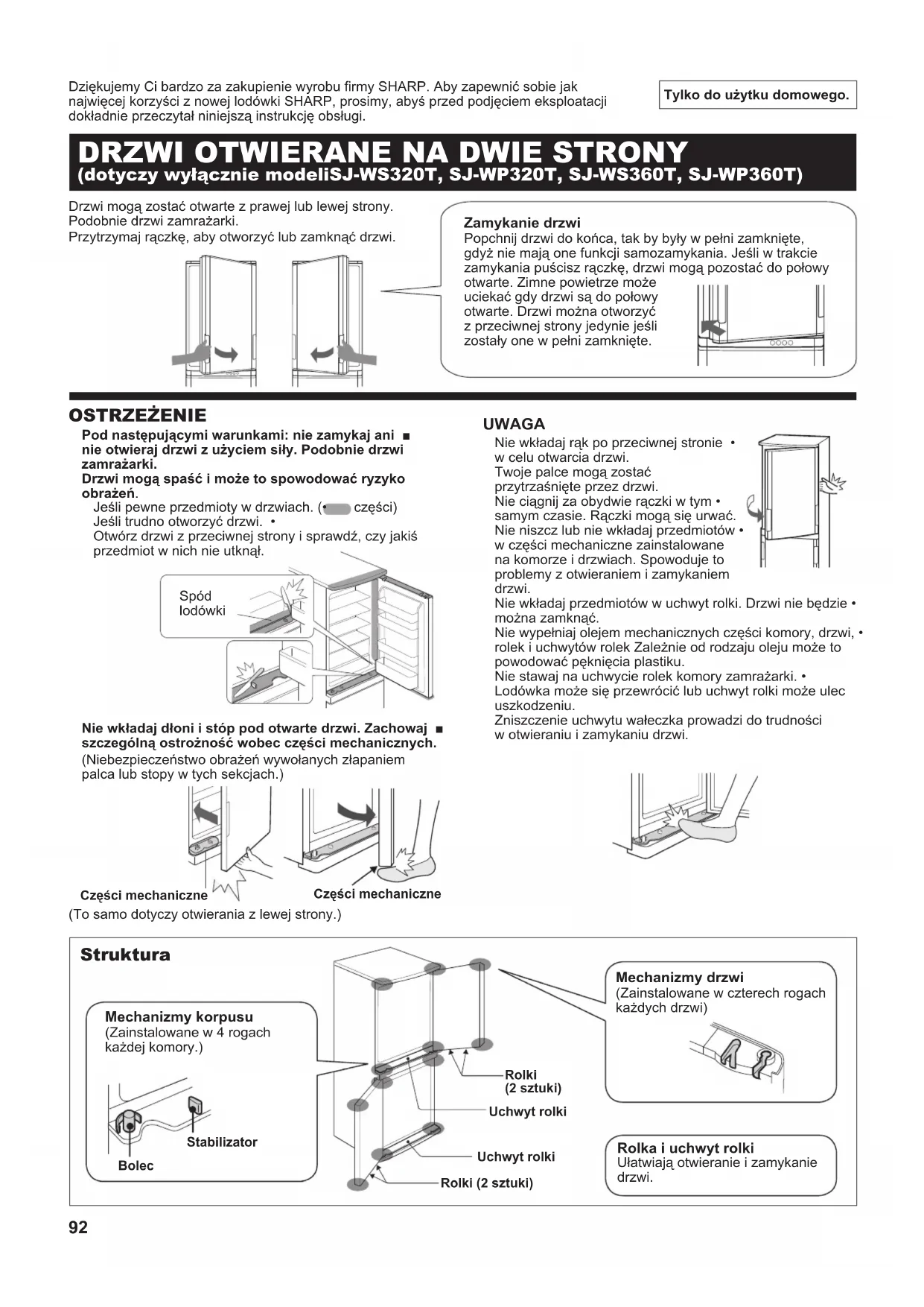 SJWS360TSL - Lodówka SHARP - Bezpłatna instrukcja obsługi