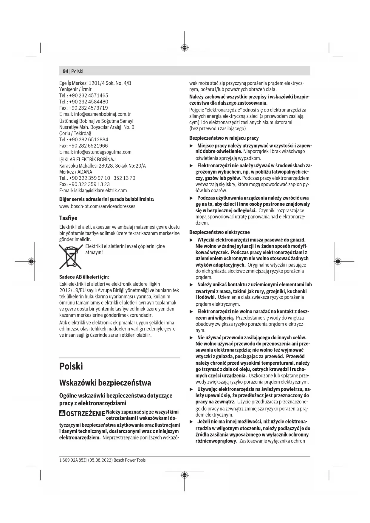 różnicowoprądowy. Zastosowanie wyłącznika ochron- 1 609 92A 85Z | (05.08.2022) Bosch Power ToolsPolski | 95