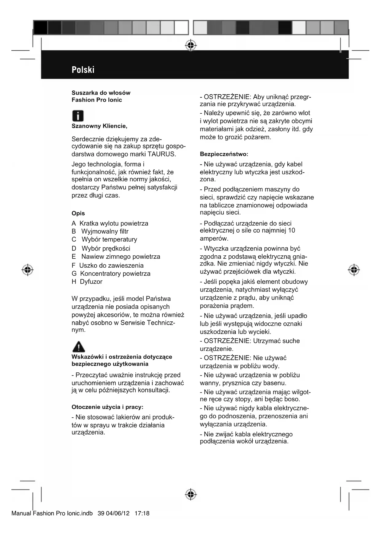 INSTRUKCJA OBSŁUGI Fashion PRO Ionic TAURUS