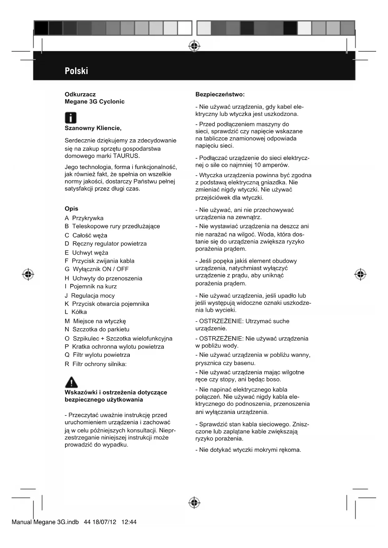 Megane 3G Cyclonic - Odkurzacz TAURUS - Bezpłatna instrukcja obsługi