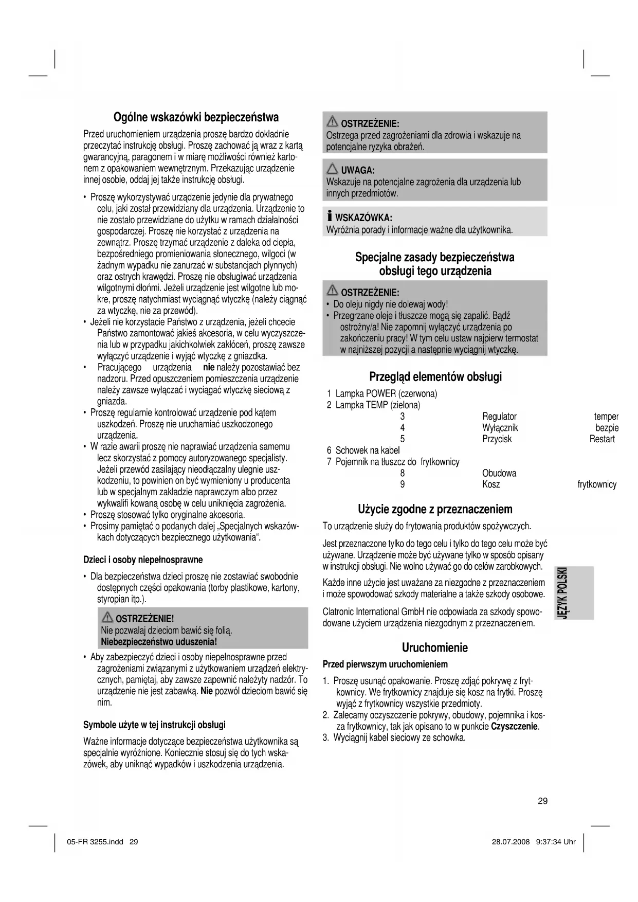 FR 3255 - Frytkownica CLATRONIC - Bezpłatna instrukcja obsługi