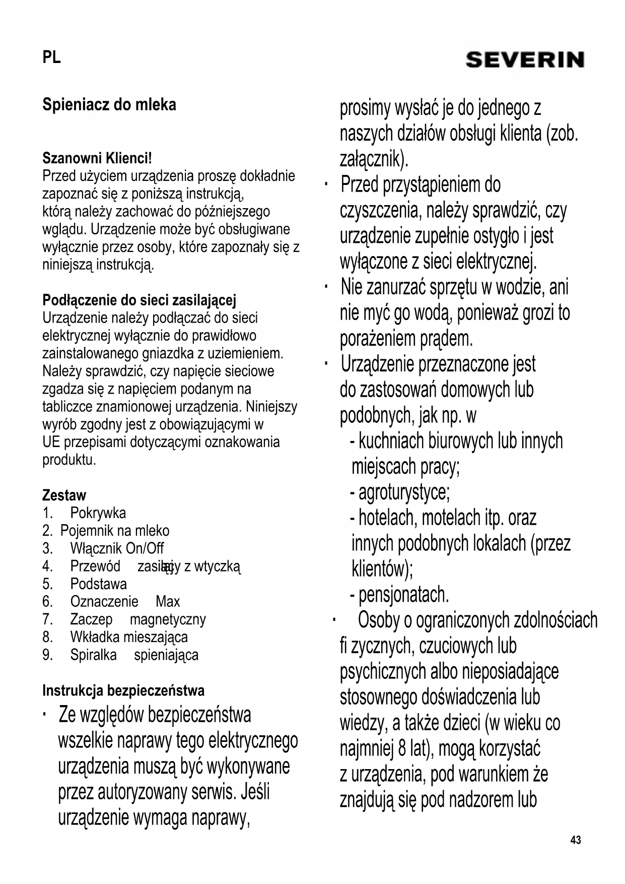SM 3580 - Spieniacz do mleka SEVERIN - Bezpłatna instrukcja obsługi