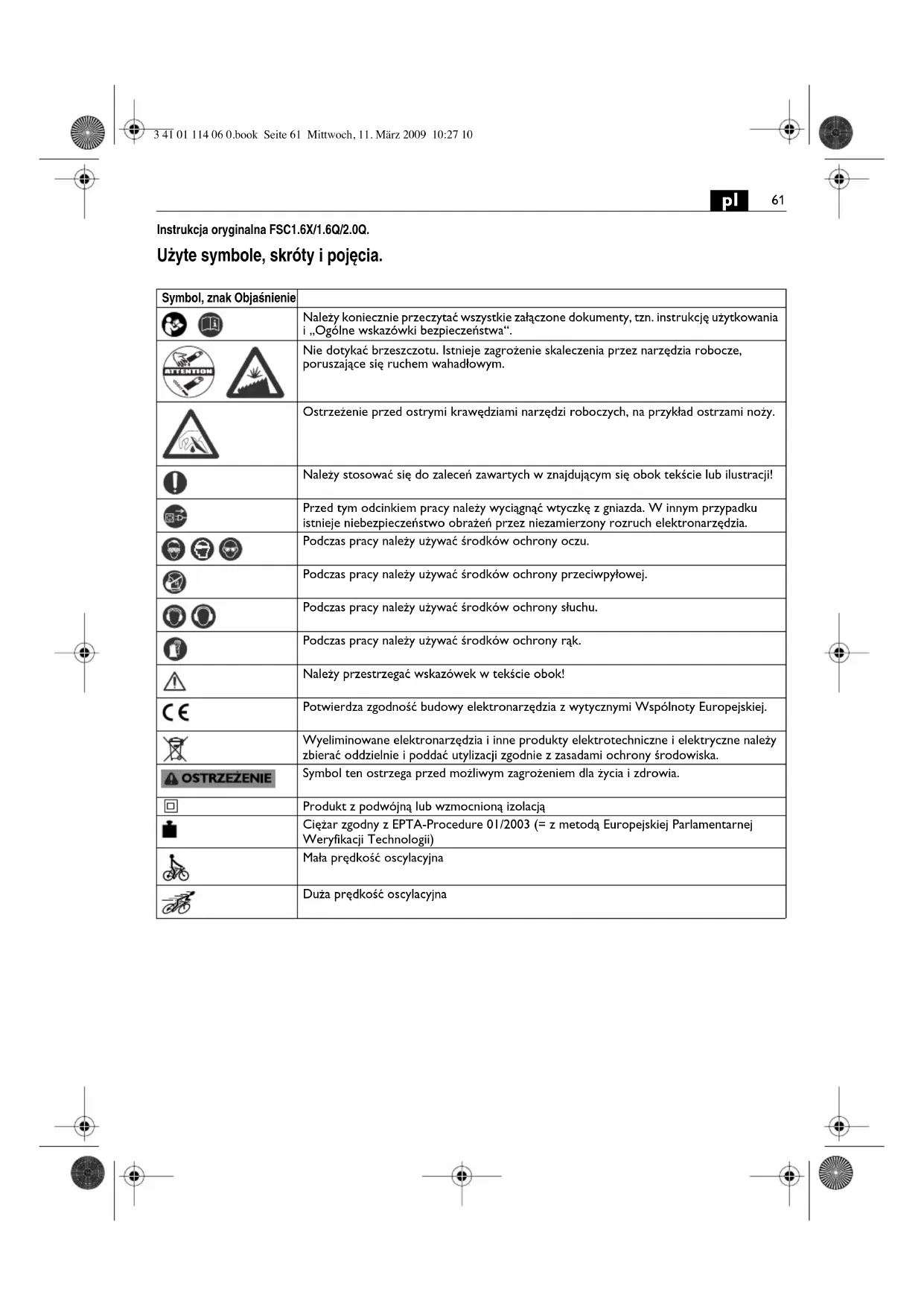 Firma FEIN oswiadca z peña odowiedzialnosci, ze niniejszy produkt zgodny jest z odpowiednimi postanowieniami podanymi na ostatnej stronie niniejszej instrukcji eksploataci.