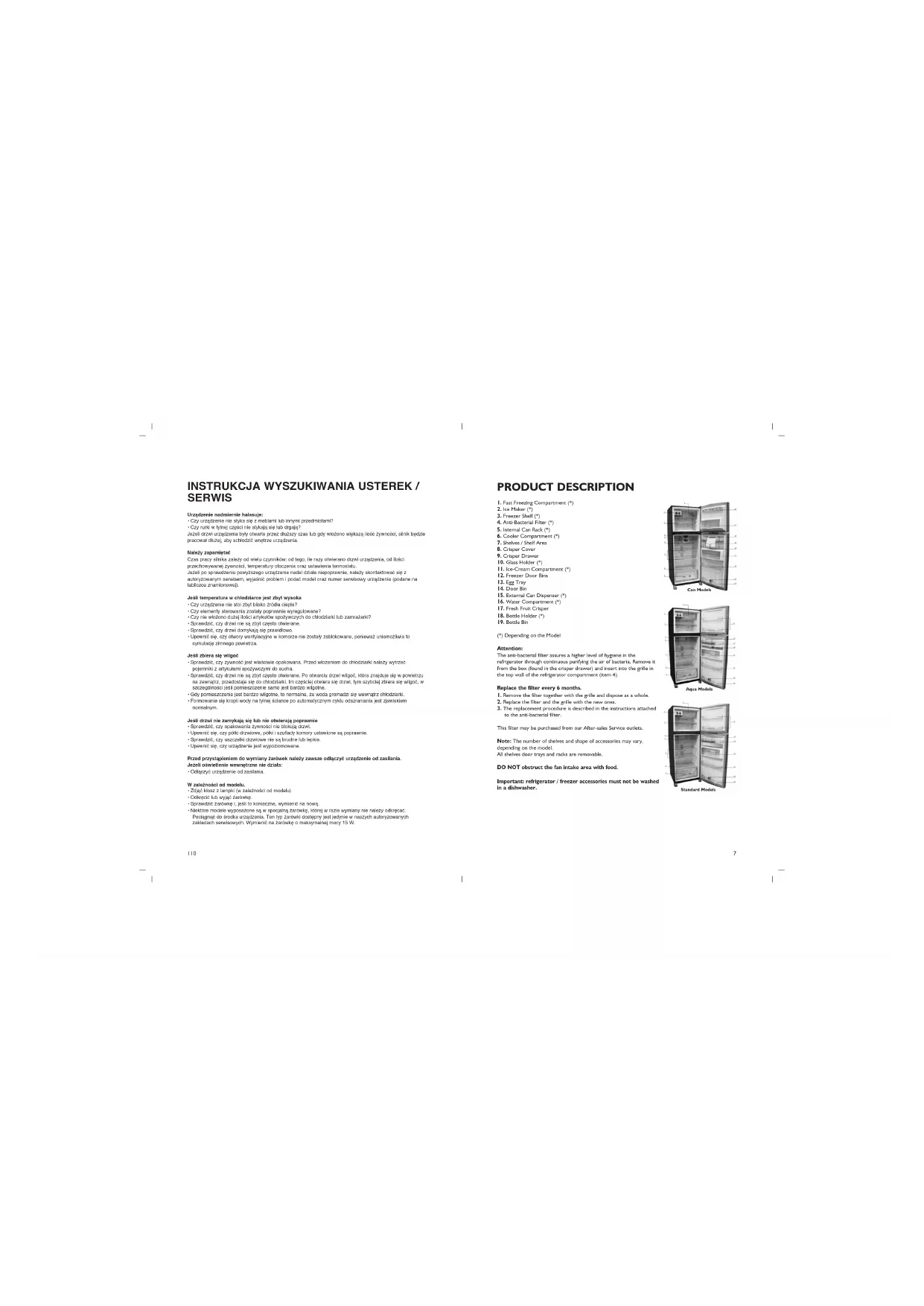 SAFEGUARDING THE ENVIRONMENT W10243903_GB:Layout 1 25-03-2009 15:14 Pagina 5111 Zanim zwrócą się Państwo do serwisu:1. Proszę sprawdzić, czy nie można samodzielnierozwiązać problemu (patrz rozdział “Instrukcjawyszukiwania usterek/Serwis”).2. Uruchomić ponownie urządzenie, aby upewnićsię, czy usterka nie ustąpiła. Jeśli wynik jestnegatywny, wyłączyć ponownie urządzenie ipowtórzyć sprawdzian po godzinie.3. Jeżeli rezultat jest w dalszym ciągu negatywny,należy skontaktować się z autoryzowanymzakładem serwisowym.Należy podać:• rodzaj usterki.• model.• numer serwisowy (numer po słowie SERVICE natabliczce znamionowej znajdującej się powewnętrznej stronie urządzenia)• dokładny adres.• numer telefonu wraz z numerem kierunkowym.Uwaga:Kierunek otwierania drzwi można zmieniać. Jeśliczynność ta zostanie wykonana w zakładzieserwisowym, nie jest ona wykonywana w ramachgwarancji. SERWIS TECHNICZNY