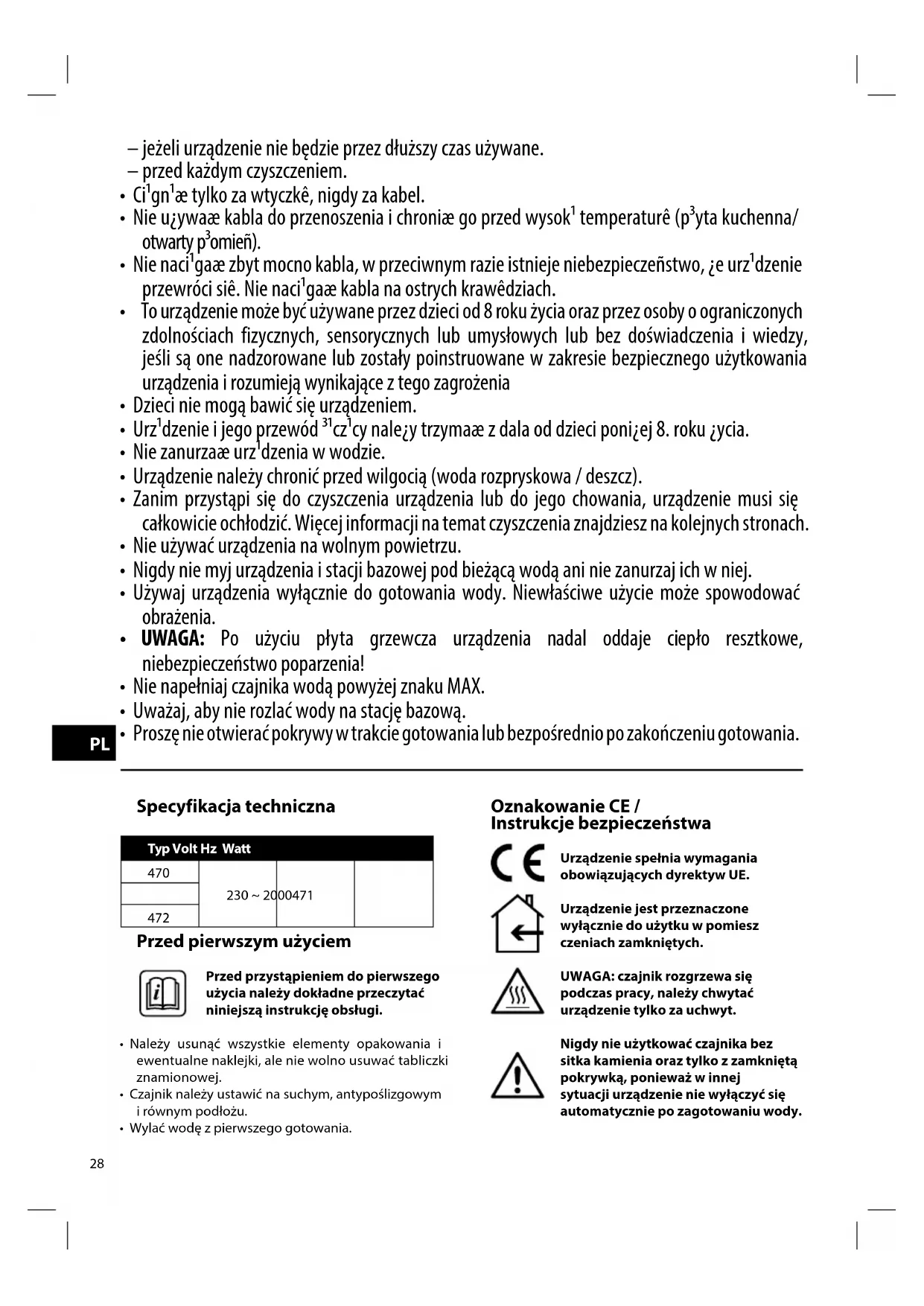 - Przed waniem wody nalezy zawsze zdjac czajnik z podstawki kontaktowej.