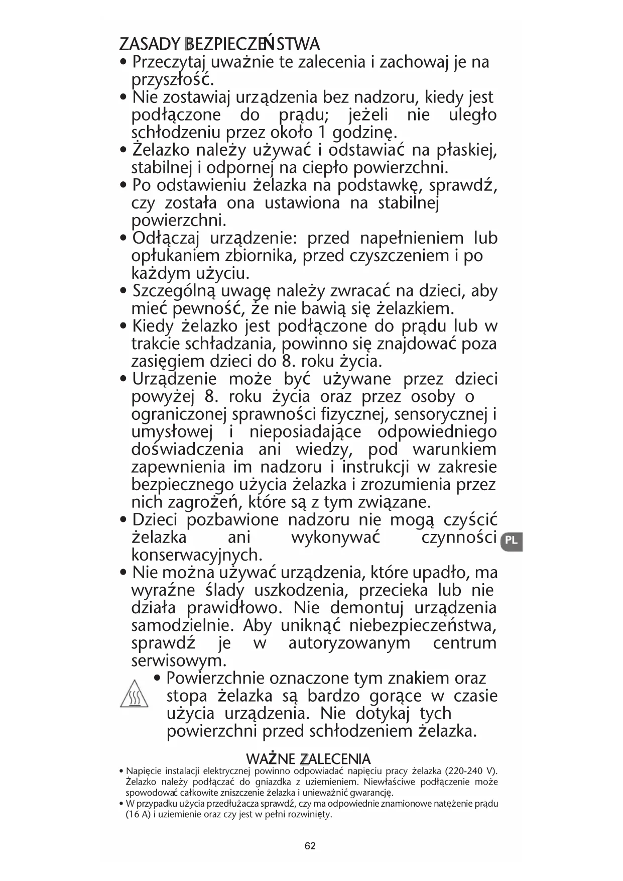 bezpiecznego uyycia yelazka i zrozumienia przez
