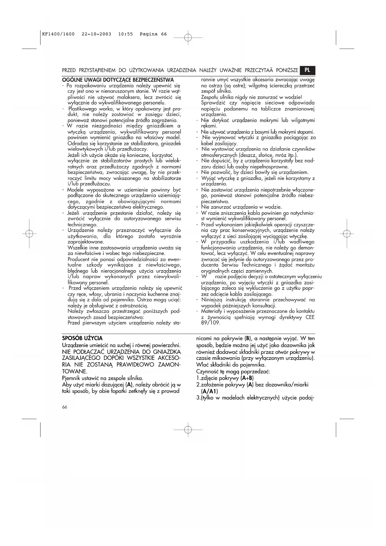 KF 1600 EP - Blender DELONGHI - Bezpłatna instrukcja obsługi