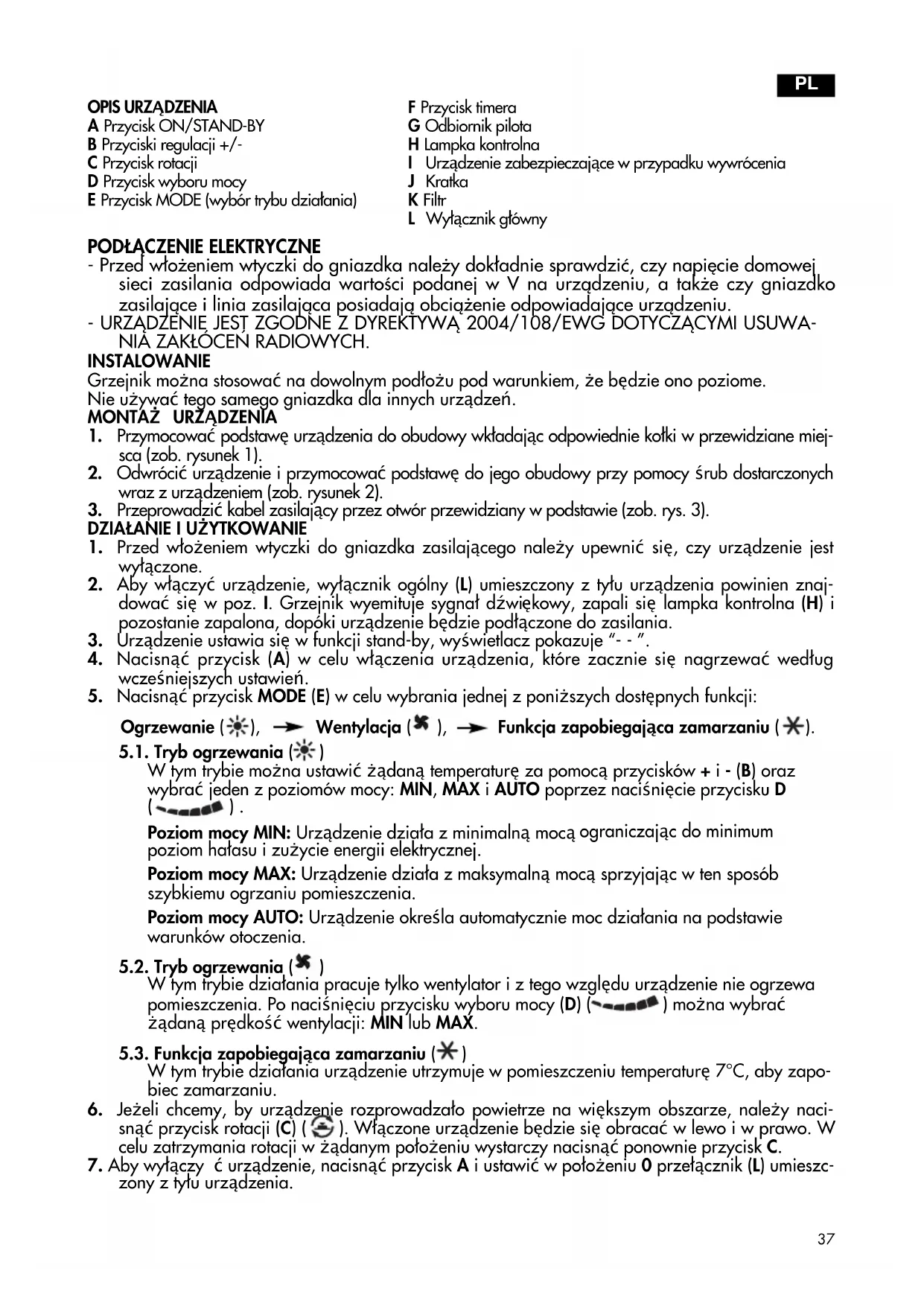 2. Aby włączyć urządzenie, wyłącznik ogólny (L) umieszczony z tyłu urządzenia powinien znaj-