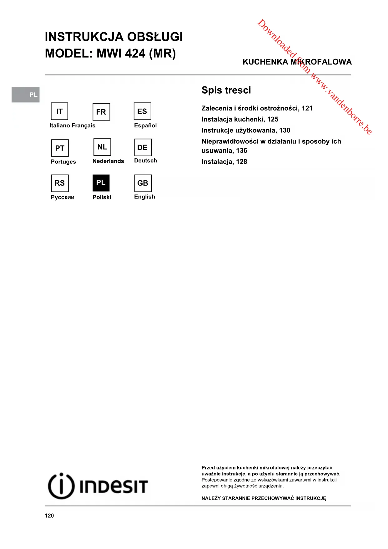 Znajdź bezpłatnie instrukcję urządzenia MWI 424 INDESIT w formacie PDF.