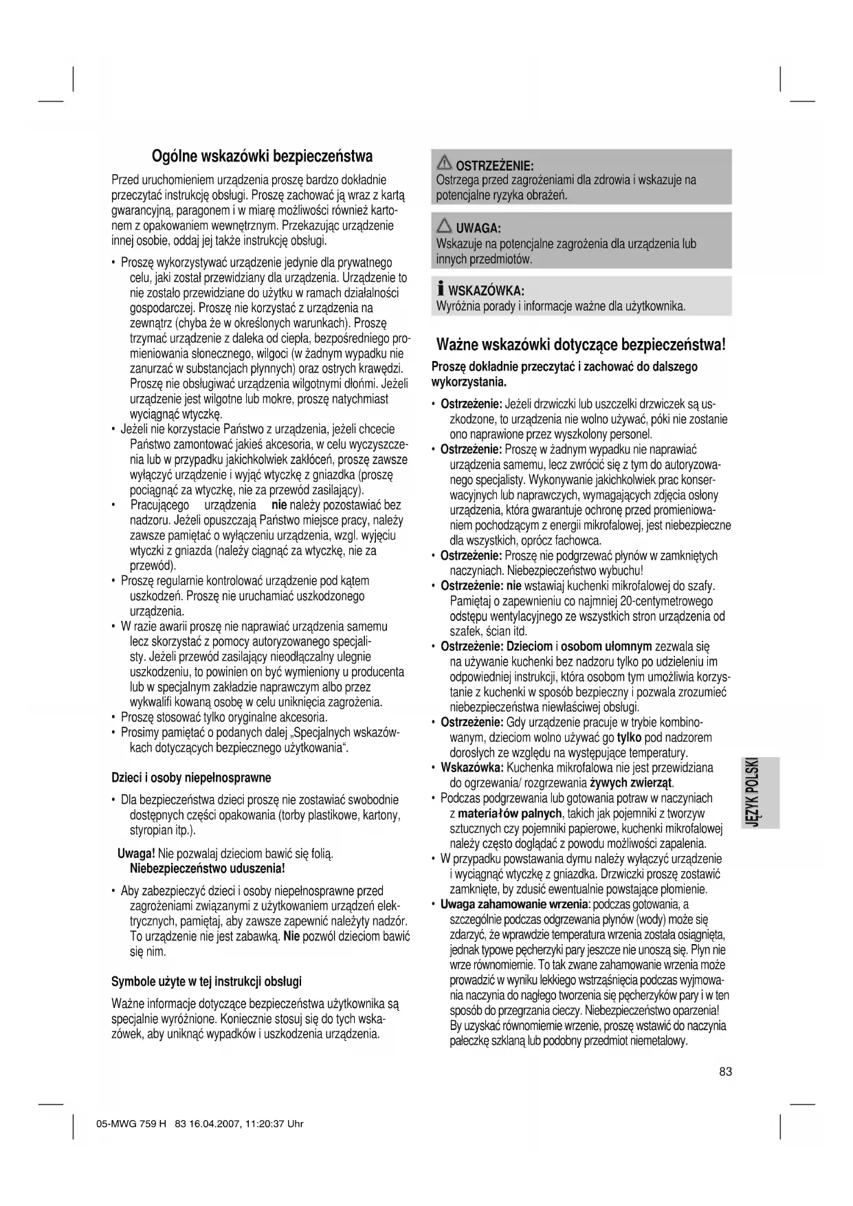 - Proszę podgrzewać tylko 1-2 porcje na raz. W przeciwnym razie kuchenka traci na skuteczności. 05-MWG 759 H 84 16.04.2007, 11:20:39 UhrJĘZYK POLSKI