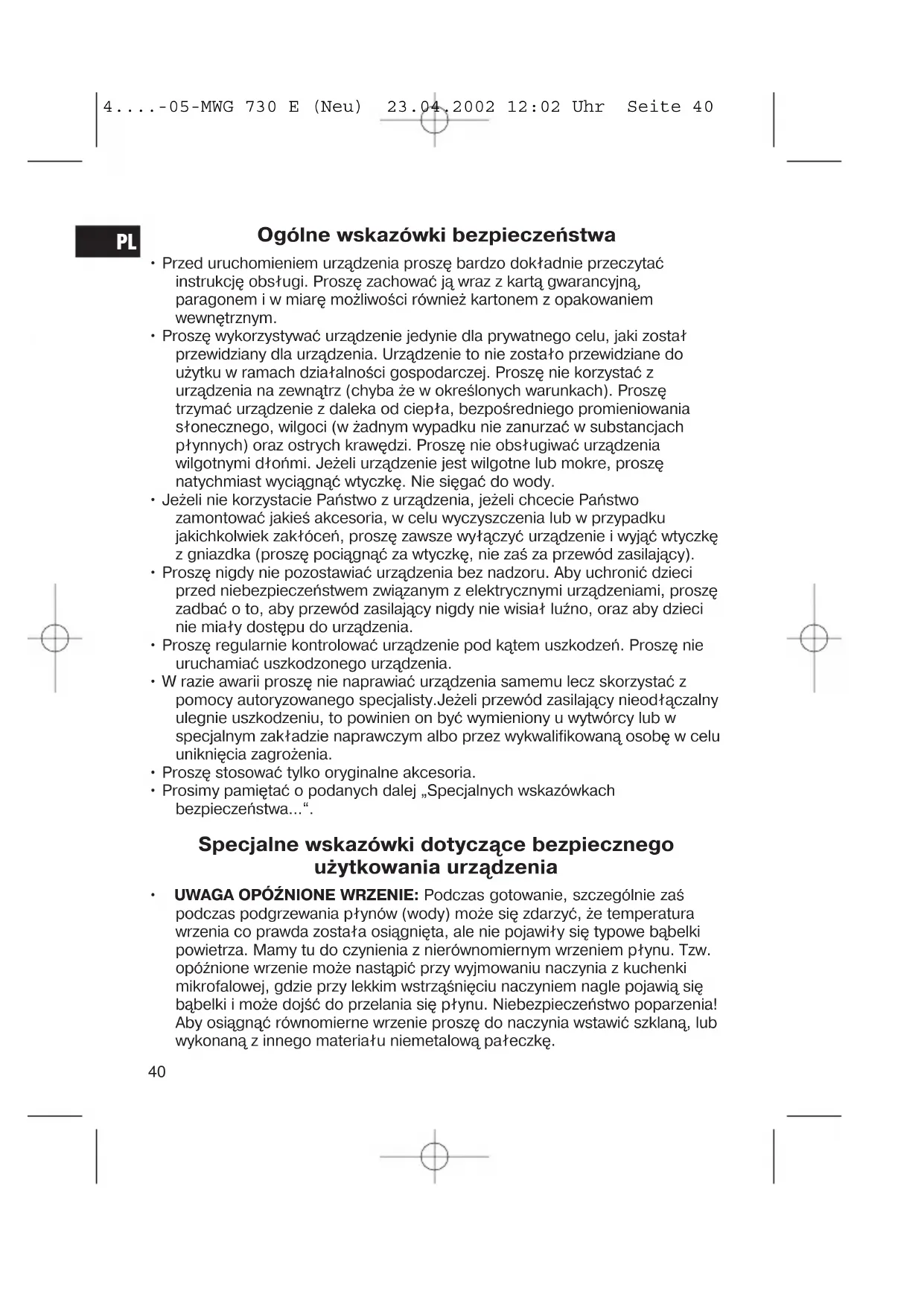 4....-05-MWG 730 E (Neu) 23.04.2002 12:02 Uhr Seite 40• Proszę nie podgrzewać cieczy w zamkniętych pojemnikach. Niebezpieczeństwo wybuchu.