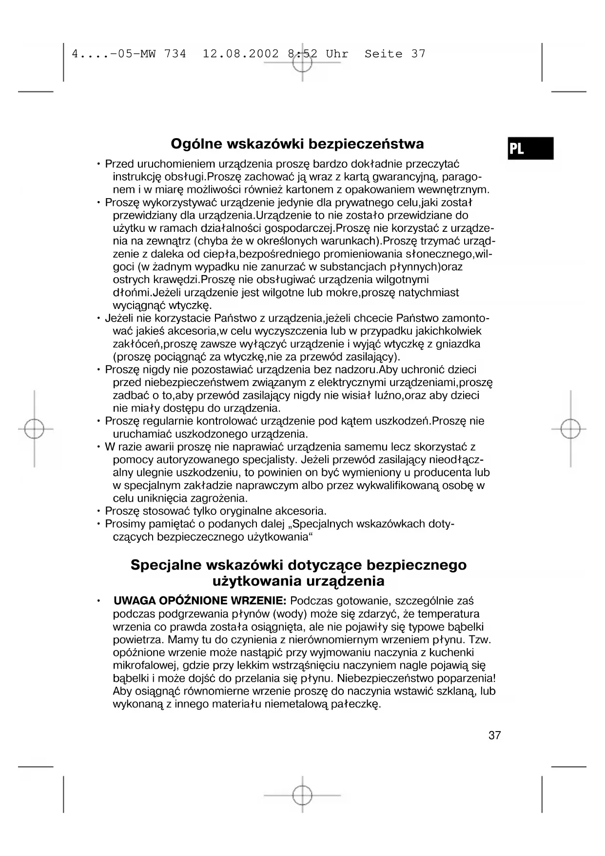 4....-05-MW 734 12.08.2002 8:52 Uhr Seite 37• Proszę nie podgrzewać cieczy w zamkniętych pojemnikach. Niebezpieczeństwo wybuchu.