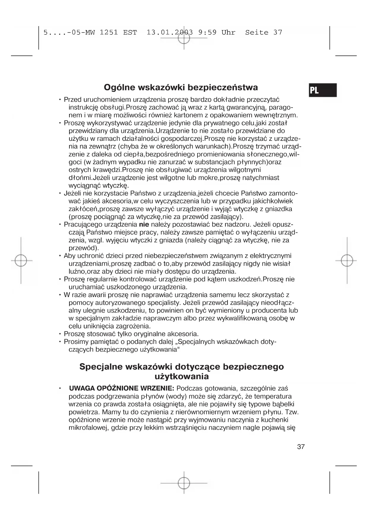5....-05-MW 1251 EST 13.01.2003 9:59 Uhr Seite 36Ogólne wskazówki bezpieczeństwa