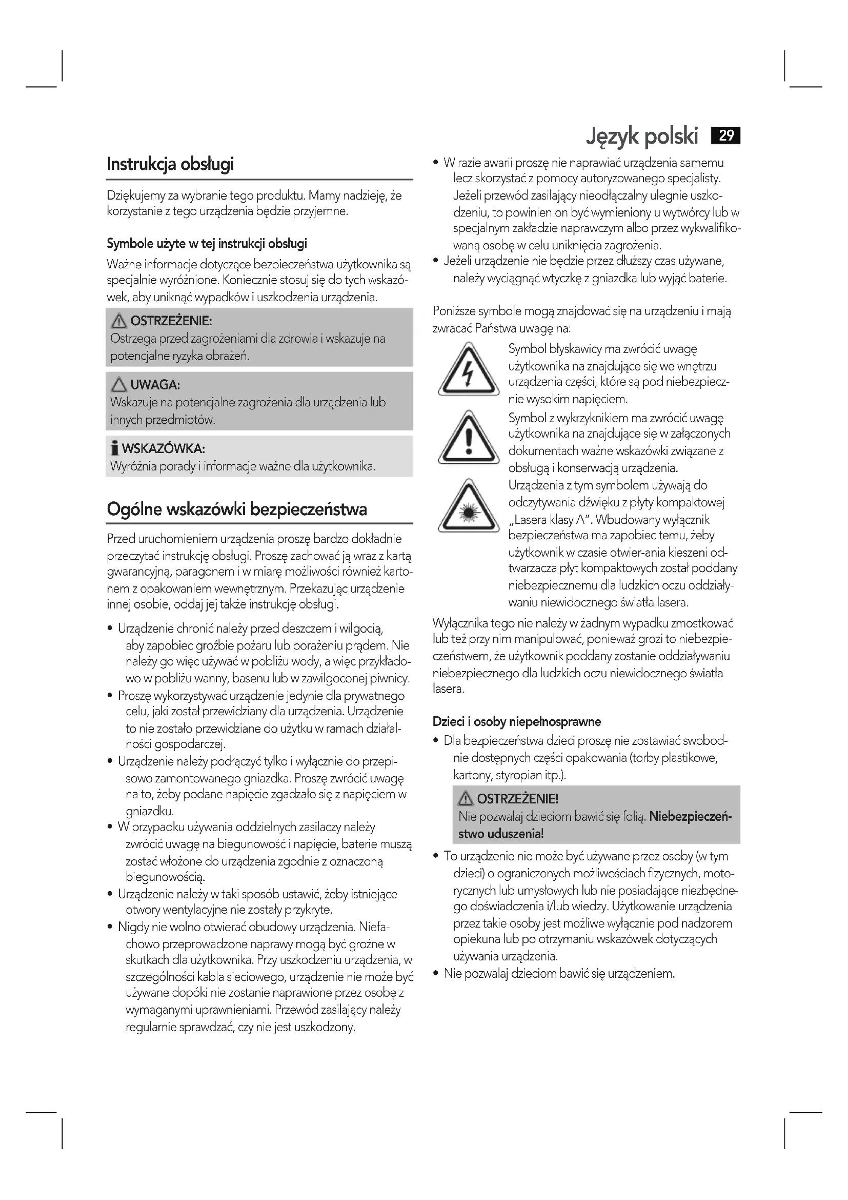 - Nie pozwalaj dzieciom bawić się urządzeniem.Język polski