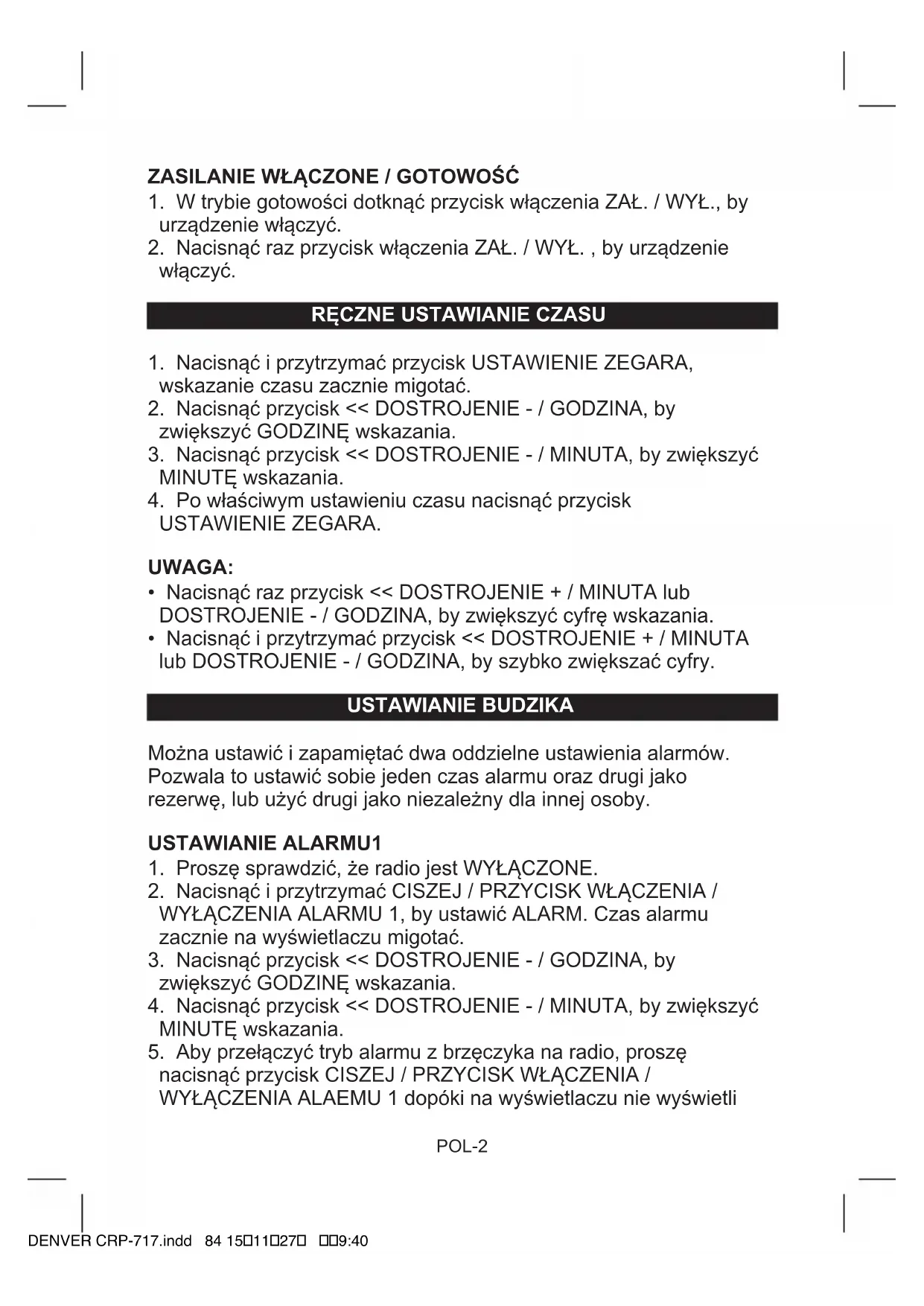 INSTRUKCJA OBSŁUGI CRP717 DENVER
