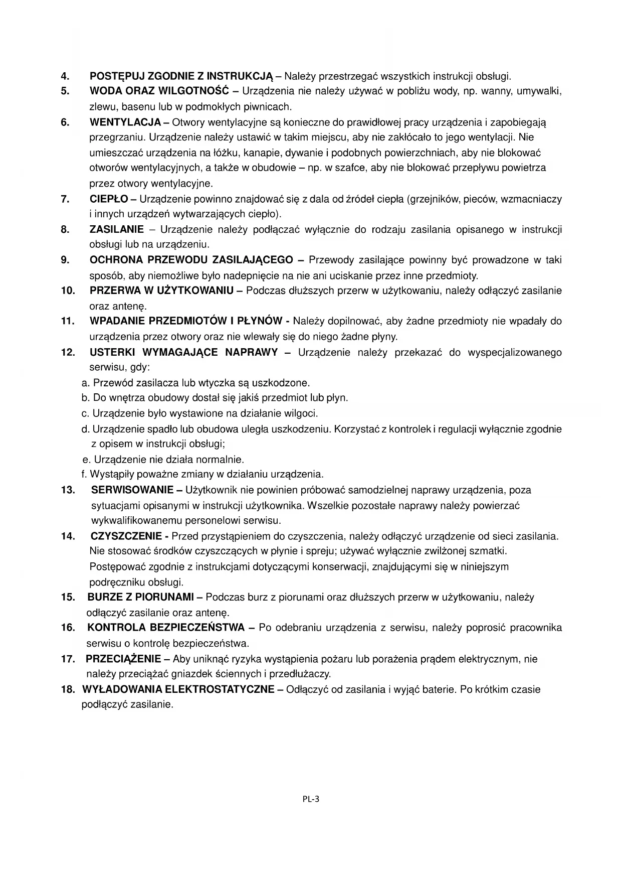 - W przypadku niekorzystania przez dłuższy czas, należy wyjąć wtyczkę z gniazda AC.PL-5 Wypakowanie: